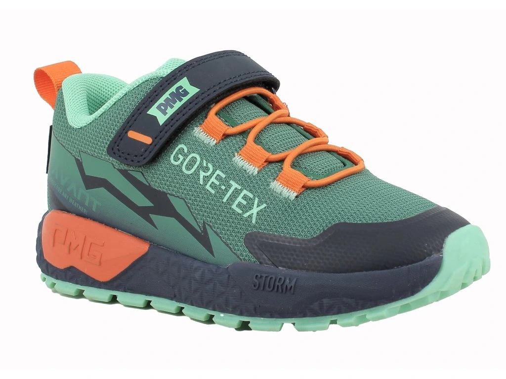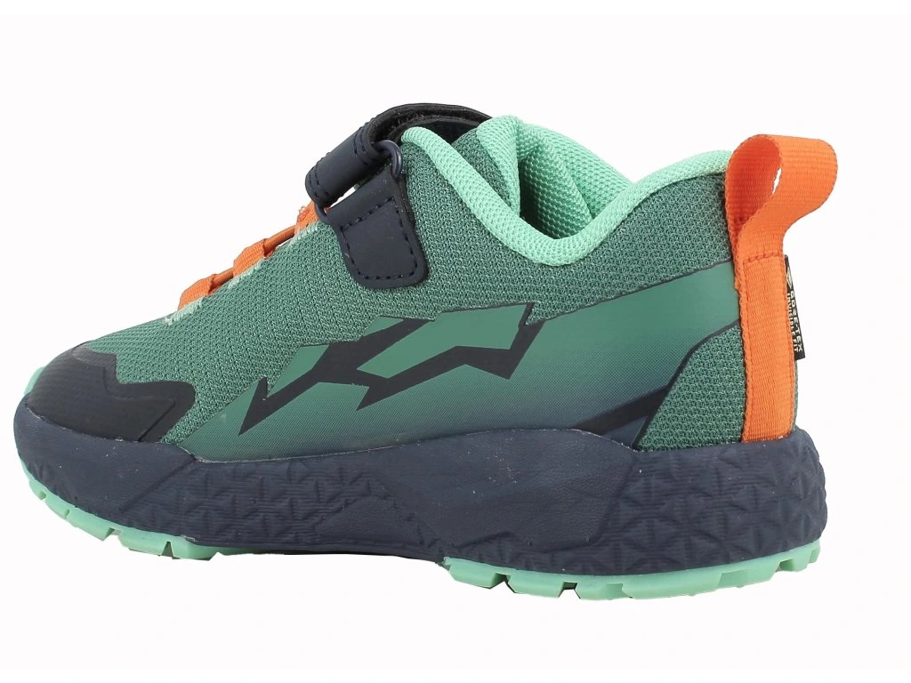Dětské tenisky Primigi 1431088 Goretex v kombinaci v zelené barvě. Podrážka je silnější, velmi lehká, má hrubý outdoorový vzorek a antishock systém, který tlumí otřesy pod patou. Díky Gore-Tex membráně Vás počasí nepřekvapí - boty nepromoknou a zároveň dýchají. Boty se hodí jak do města, tak do přírody :-) Snadné zapínání na suchý zip, ve spodní části je gumička, která ale nejde nijak stáhnout.