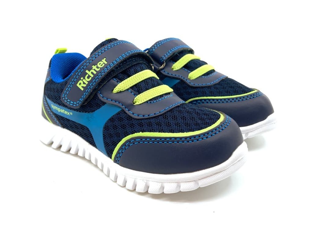 Dětské tenisky Richter 2669 3271 6821 Neutical/ Lime v modro-zelené kombinaci výrobce Richter jsou skvělé na sport i každodenní nošení. Boty jsou extrémně prodyšné a to díky svršku ze síťoviny, která zajišťuje dostatečnou ventilaci. Špičku i opatek chrání syntetické vrstva proti okopání.