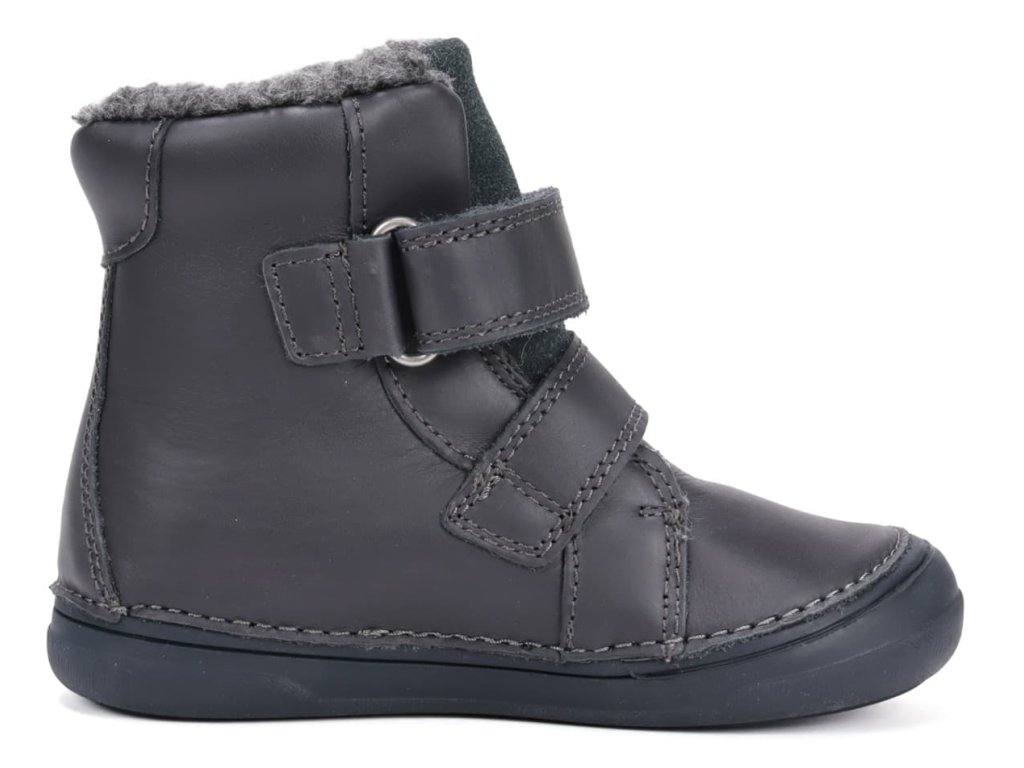 Dětské zimní boty DD Step W078-52785A Royal Blue s motivem dinosaura pro všechny malé hrdiny. Měkké, pohodlné boty vyššího střihu s hřejivým kožíškem uvnitř celé boty. Svršek je z hladké kůže, která se velmi dobře udržuje. Vyjímatelná pěnová stélka pro možnost kontroly velikosti s kožíškovým nášlapem. Prostorná, poměrně široká špička pro volný pohyb prstů v botě a zároveň pevný opatek zamezující "šmajdání". Dva suché zipy pro lepší regulaci v oblasti nártu a kotníku. Podrážka je poměrně tenká a ohebná, hlavně ve směru chůze, zateplení od spodu je dosaženo zejména silnou vrstvou kožíšku na vnitřní stélce.