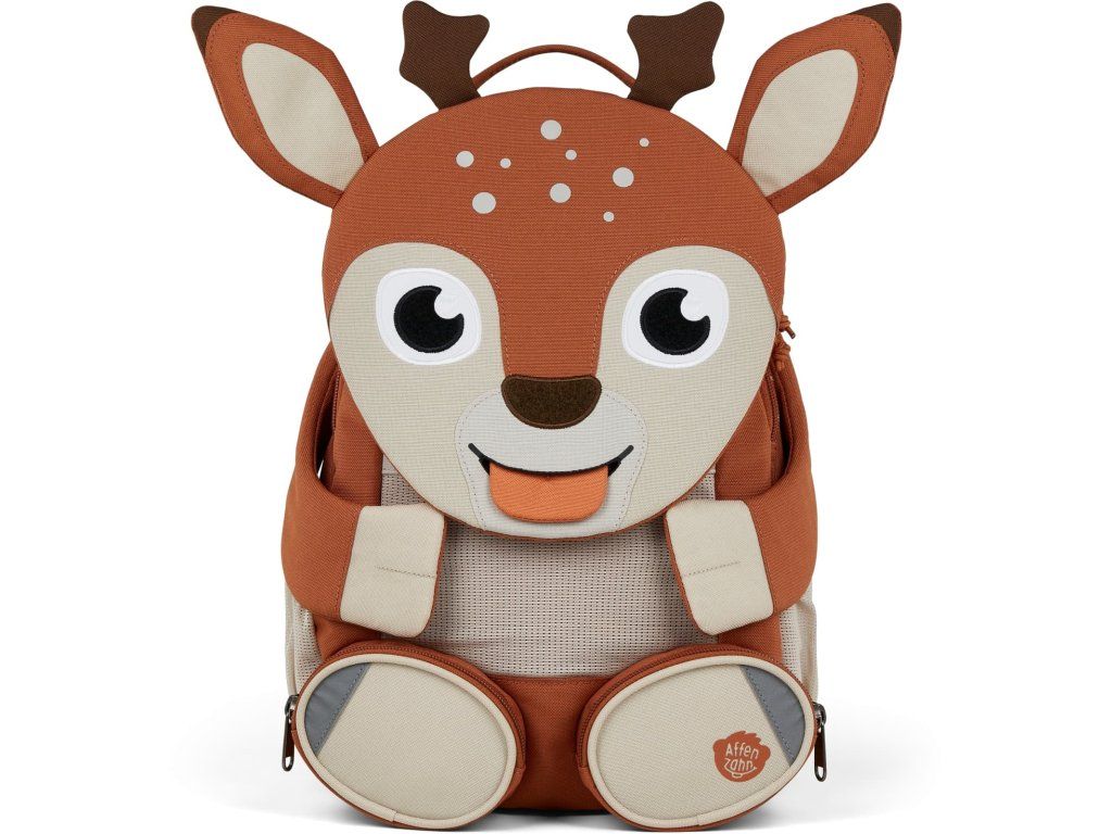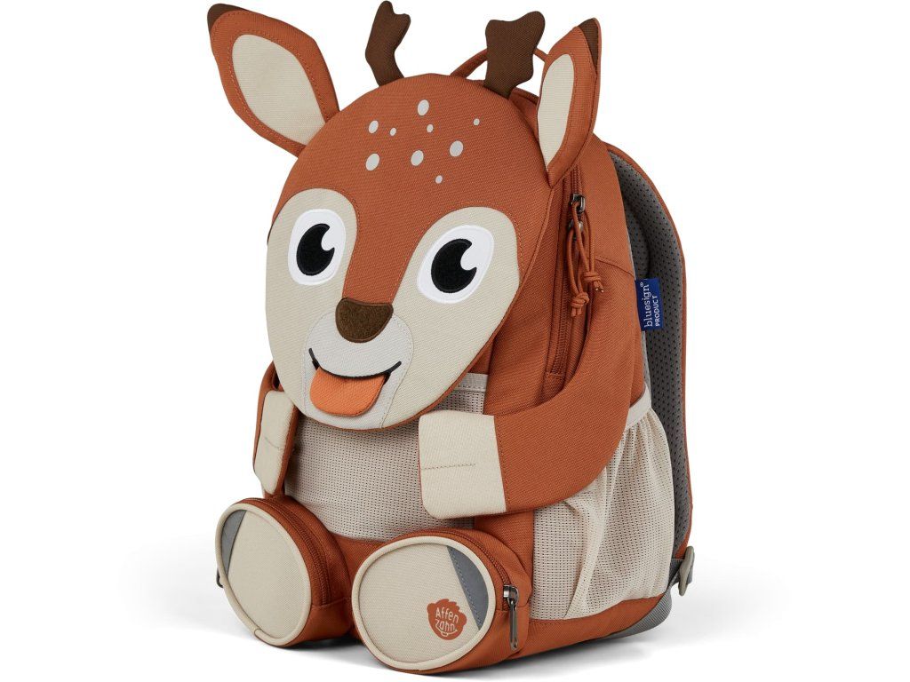 Batoh Affenzahn Large Friend - Deer je navržený pro malé cestovatele ve věku od 3 do 5 let, kteří už potřebují o něco více prostoru na své poklady. Není to jen batoh do školky, ale věrný kamarád, který je plný chytrých funkcí, hravých detailů a zároveň myslí na pohodlí i bezpečí vašeho dítěte.