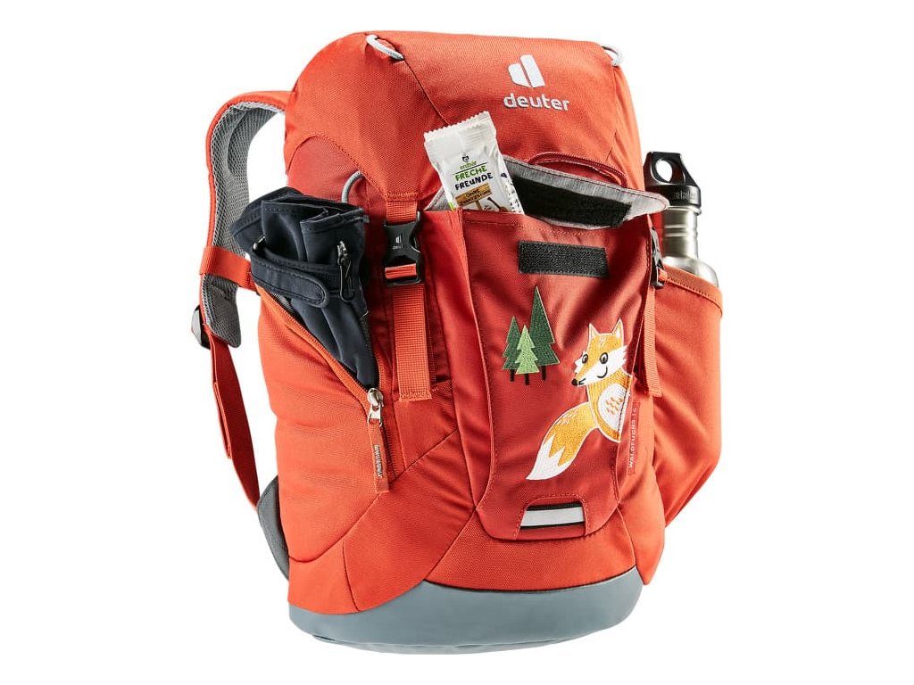 Dětský turistický batoh Deuter Waldfuchs 14 v šedé kombinaci Arctic-Slate s tradiční liškou pro rok 2022. Nabízí různé vychytávky pro zpestření pobytu v přírodě. Batoh má dvě postranní kapsy, vnitřní voděodolnou kapsu, pláštěnku ve víku a ve vnitřním zádovém pouzdru najdete vyjímatelný podsedák pro chvíle odpočinku.