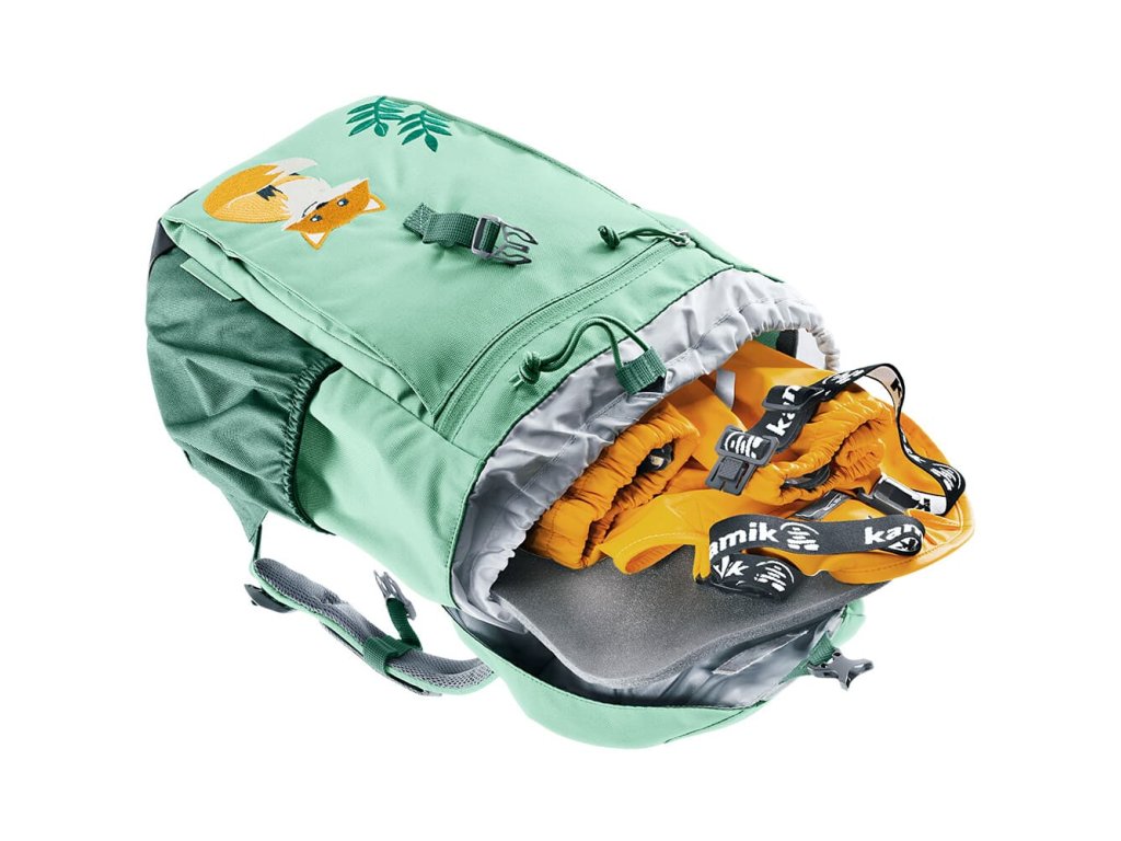 Dětský turistický batoh Deuter Waldfuchs 14 Dahlia-Raspberry s tradiční liškou. Nabízí různé vychytávky pro zpestření pobytu v přírodě. Batoh má dvě postranní kapsy, vnitřní voděodolnou kapsu, pláštěnku ve víku a ve vnitřním zádovém pouzdru najdete vyjímatelný podsedák pro chvíle odpočinku.