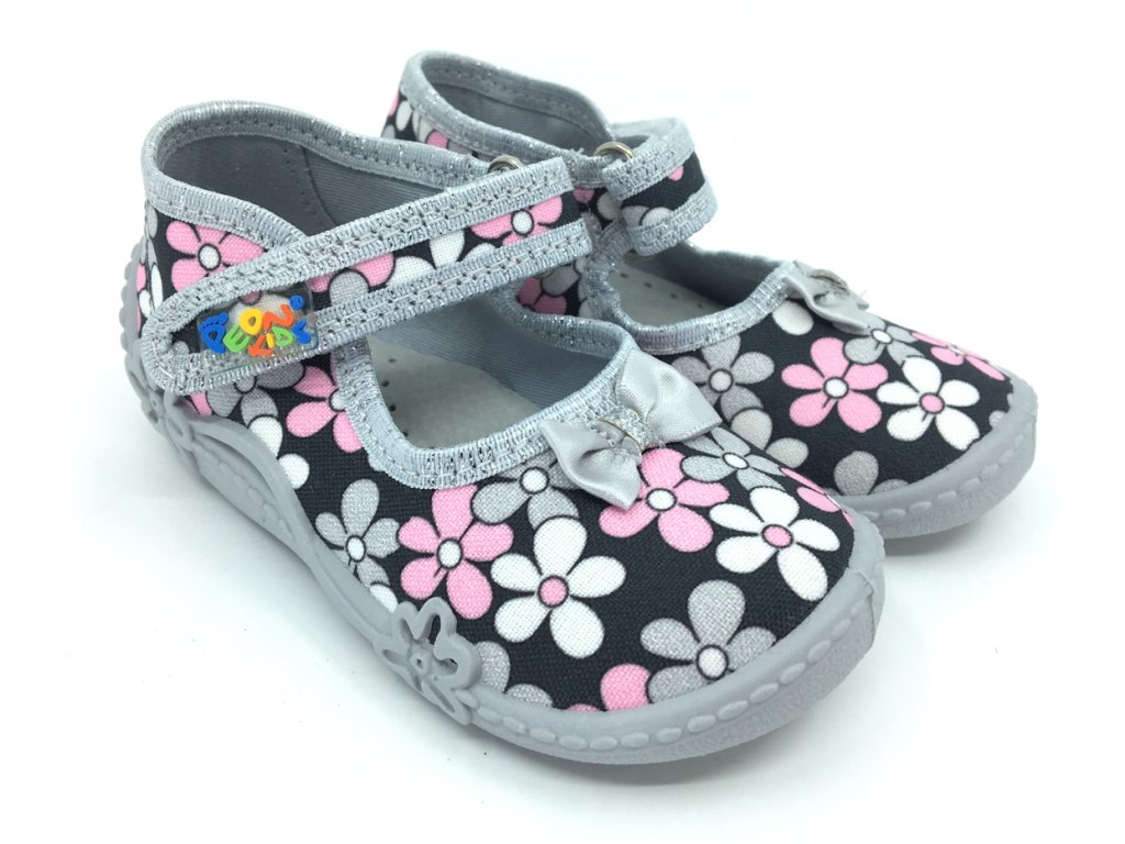 Dívčí balerínky Peon MI 009 RK s jednoduchým zapínáním na suchý zip s jsou ideální volbou jako přezůvka do školky nebo domácí obuv, přezůvky se díky pásku snadno nazouvají.