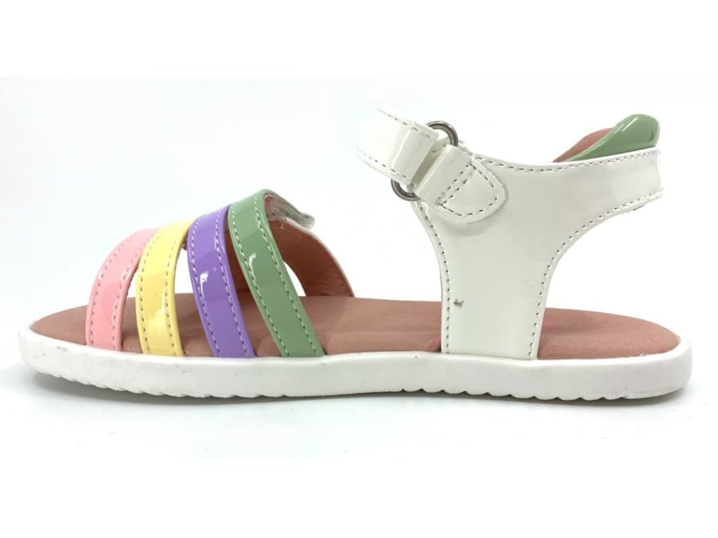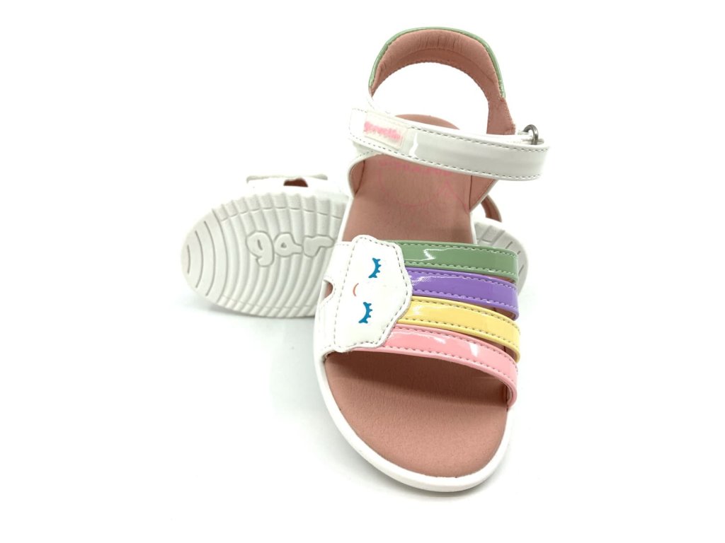 Dívčí sandálky Garvalín 262431-B310 Blanco Y Multicolor. V dívčím motivu duhy v bílé barvě. Vyrobené z kvalitních materiálů. Boty mají stélku z mikrovlákna, příjemnou na dotyk. Vnitřní konstrukce boty je z kůže. Sandálky jde dobře dotáhnout dvěma suchými zipy - přes nárt i kotník.