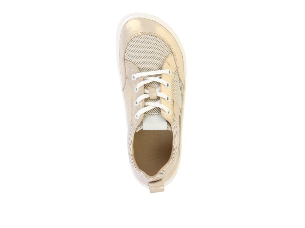 Kožené šněrovací barefoot tenisky Froddo G3130273-3 Gold Shine mají vrchní část z kombinace kůže a textilních částí, ale také mají kompletně koženou podšívku. Jsou tak trochu prodyšnější než kompletně kožená verze, stále jsou ale podobně odolné. Elegantní světlý odstín s oblíbeným třpytivým efektem.