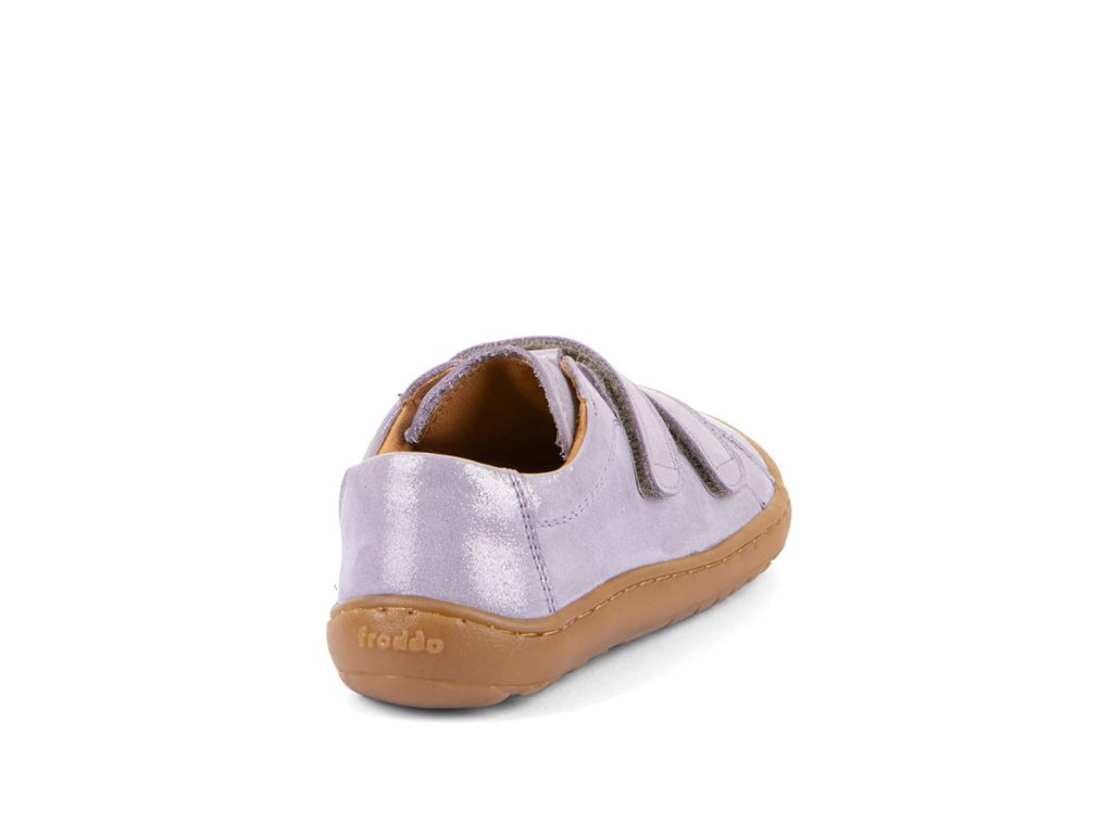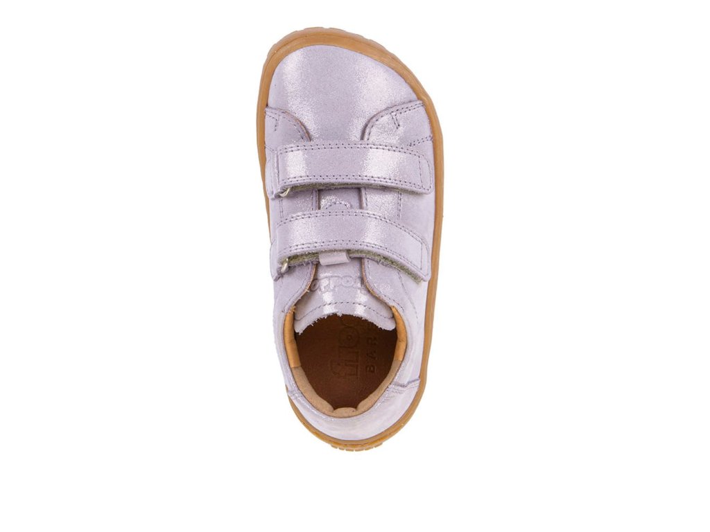 Stylové barefoot tenisky Froddo G3130284-11 Lavender v oblíbené třpytivé úpravě. Kombinují stylový design a snadné nazouvání i pro děti. Vrchní část boty je kompletně kožená, a stejně tak i podšívka je z jemné kůže. Praktické zapínání na suchý zip umožňuje snadné nazouvání i dětem. Podrážka je z přírodní gumy.