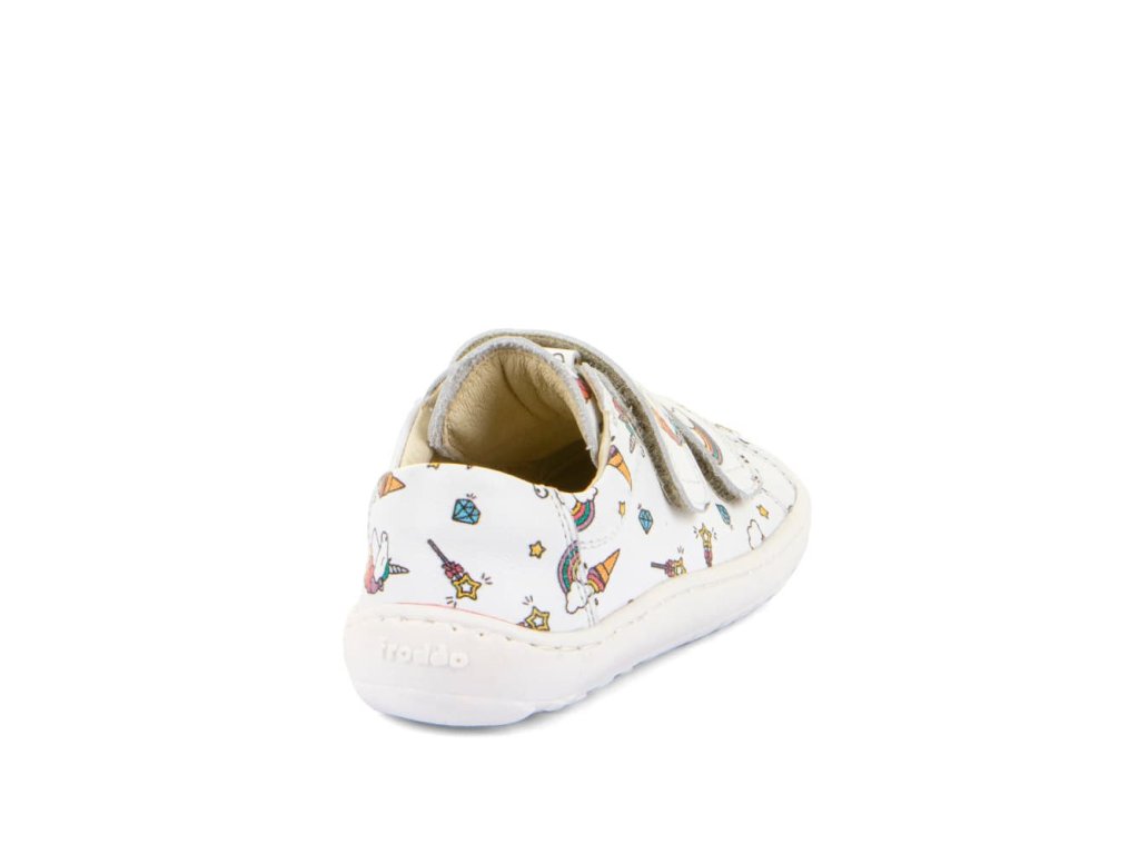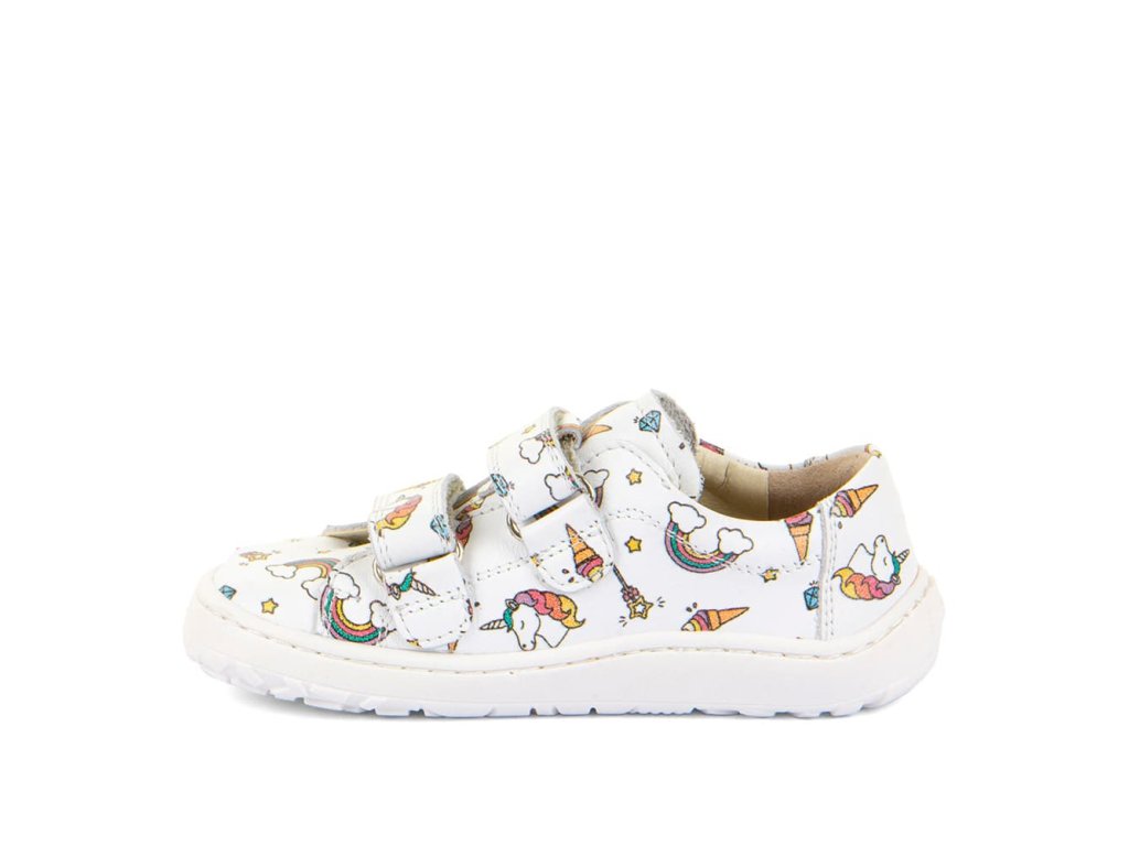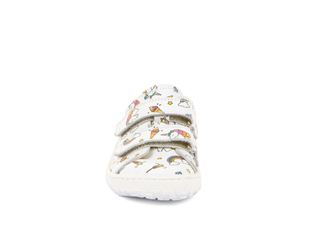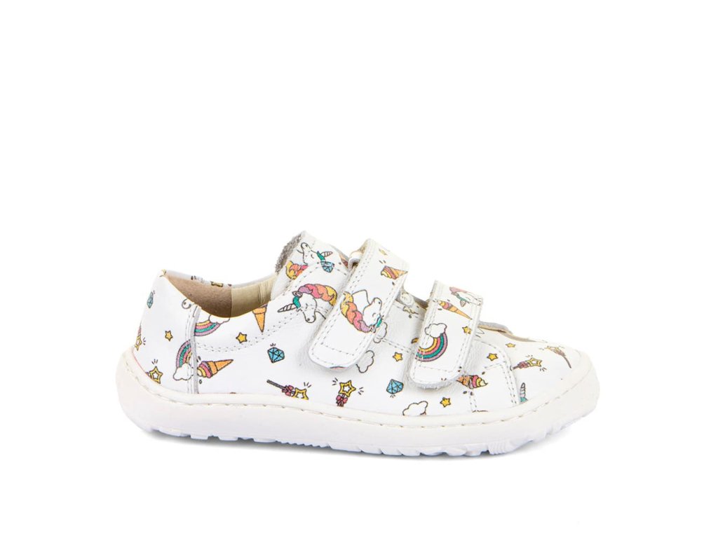 Stylové barefoot tenisky Froddo G3130284-25 White + Unicorn s oblíbeným motivem jednorožce. Kombinují stylový design a snadné nazouvání i pro děti. Vrchní část boty je kompletně kožená, a stejně tak i podšívka je z jemné kůže. Praktické zapínání na suchý zip umožňuje snadné nazouvání i dětem. Podrážka je z přírodní gumy.
