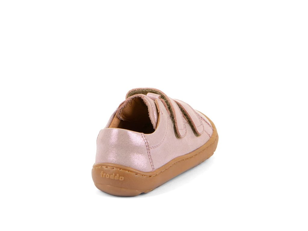 Stylové barefoot tenisky Froddo G3130284-9 Pink Shine v oblíbené třpytivé úpravě. Kombinují stylový design a snadné nazouvání i pro děti. Vrchní část boty je kompletně kožená, a stejně tak i podšívka je z jemné kůže. Praktické zapínání na suchý zip umožňuje snadné nazouvání i dětem. Podrážka je z přírodní gumy.