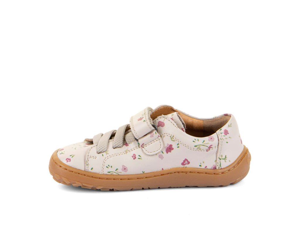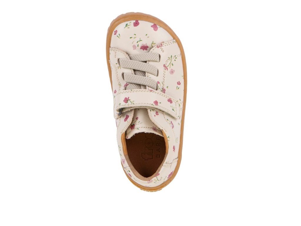 Barefoot tenisky Froddo G3130285-5 Flowers s oblíbeným motivem květin kombinují stylový design a snadné nazouvání i pro děti. Vrchní část boty je kompletně kožená, a stejně tak i podšívka je z jemné kůže. Elegantní kombinace gumičky a suchého zipu - boty se tak jednoduše nazovají a zapínají, vypadají ale dospěleji. Podrážka je z přírodní gumy.