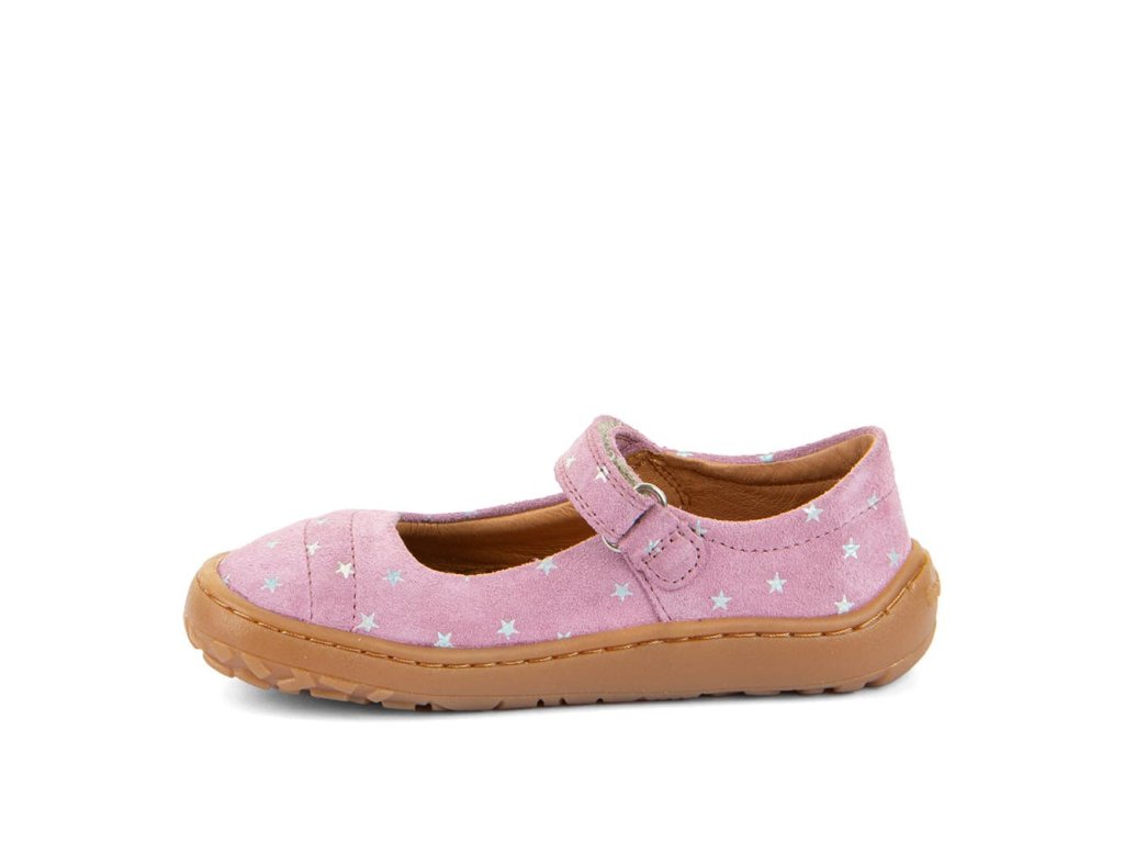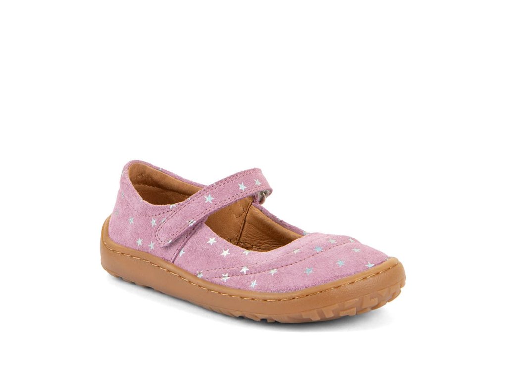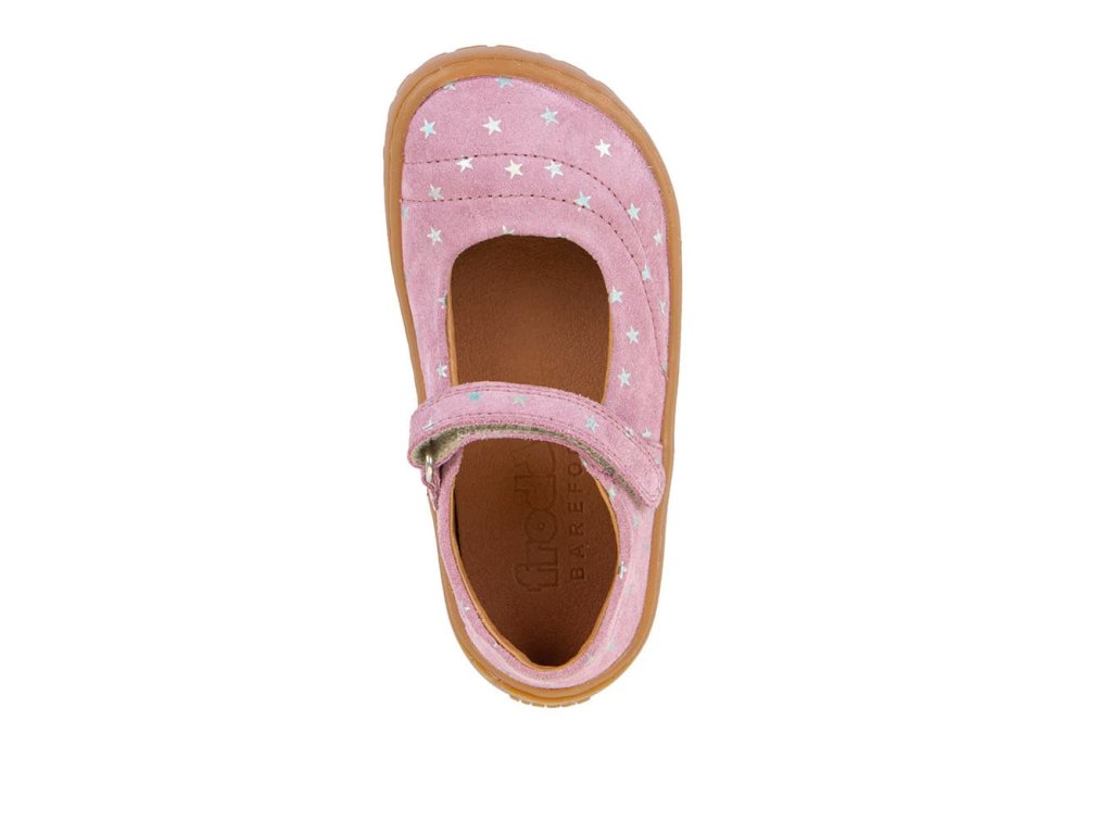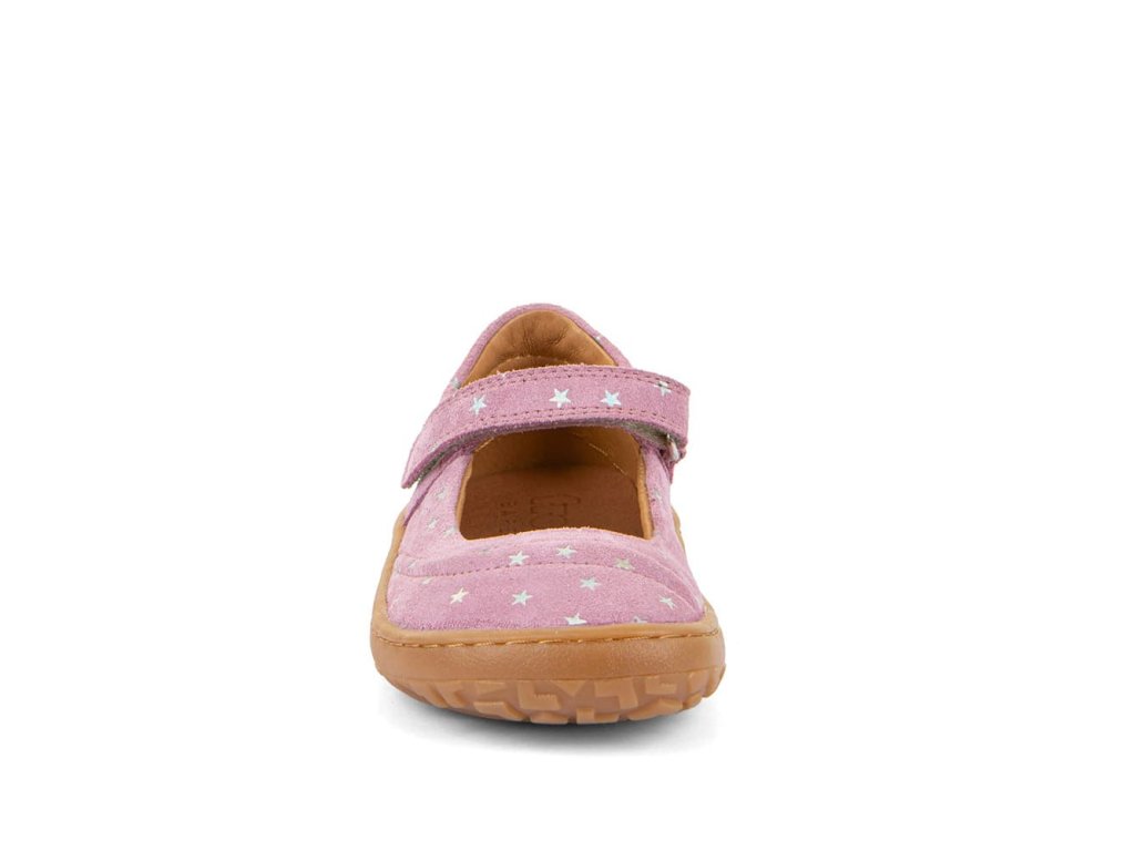 Stylové kožené barefoot balerinky Froddo Mary J G3140195-4 Pink+. Jemná přírodní kůže v růžové barvě s hvězdičkami a podrážka z přírodní gumy. Zapínání na suchý zip.