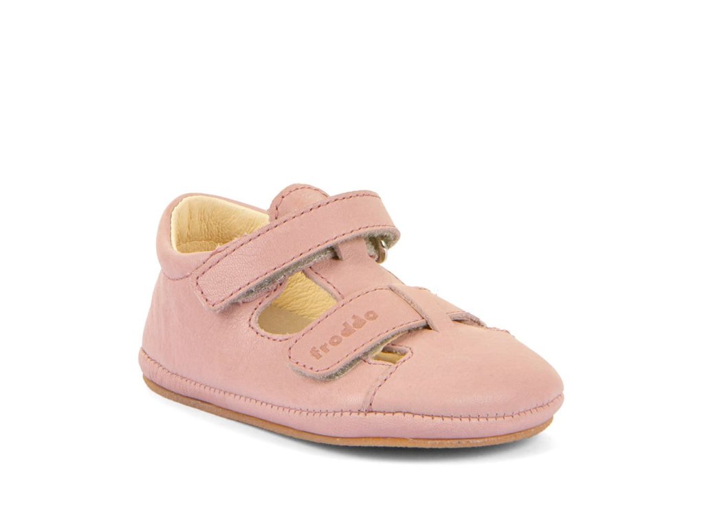 Froddo Prewalkers Pink- G1130023-7 jsou ideální sandálky/ barefoot botičky pro první nejisté krůčky dětí v létě Jsou vhodné jako přechod od capáčků k botičkám - když už Vaše dítě chce i z kočárku ven. Decentní vzhled a perfektní zpracování. Měkká, flexibilní kůže v růžové barvě spolu s tenkou gumovou podrážkou zajišťují komfort a optimální vývoj nožky.