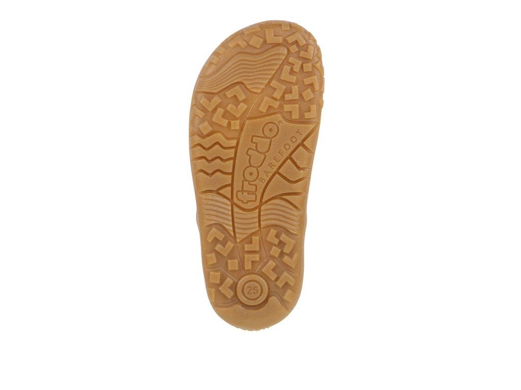 - Podrážka: velmi ohebná ve všech směrech - podélně i příčně, zároveň prošitá, nulový drop, boty mají jemný vzorek, podrážka je v přední části před prsty vyvýšená a chrání botu proti okopání, stejně tak je mírně vyvýšená za patou