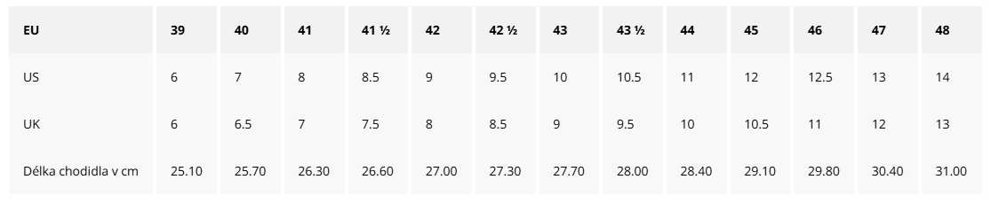 | Šířka: | Normální noha |