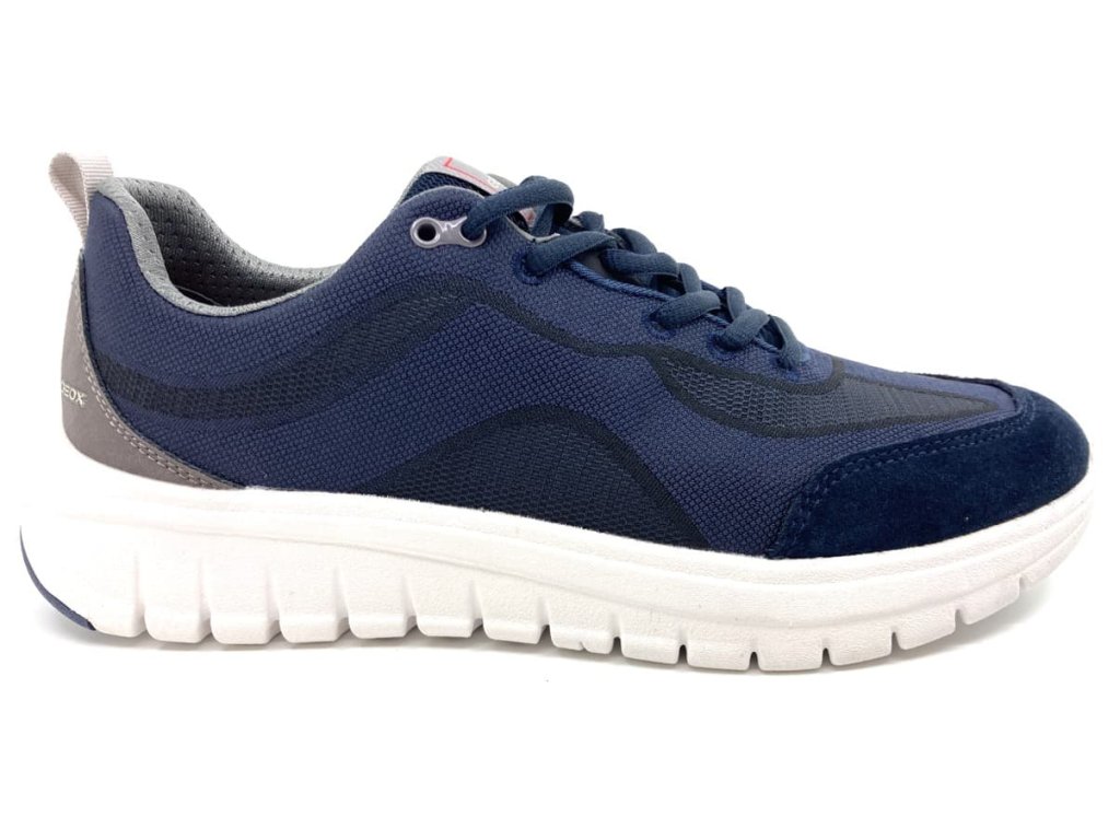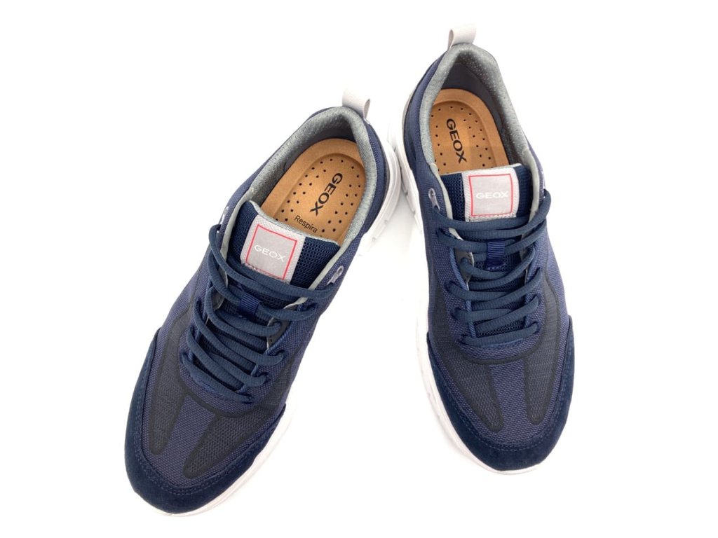 Pánské tenisky Geox Flextride Navy v modré barvě s bílou podrážkou. Moderní sportovně elegantní vzhled tenisek. Kombinace broušené kůže a prodyšného textilu. Respira podrážka odvádí pot a přitom je díky membráně nepromokavá.