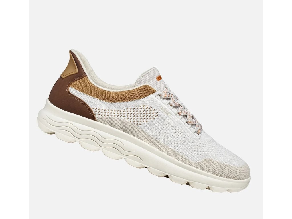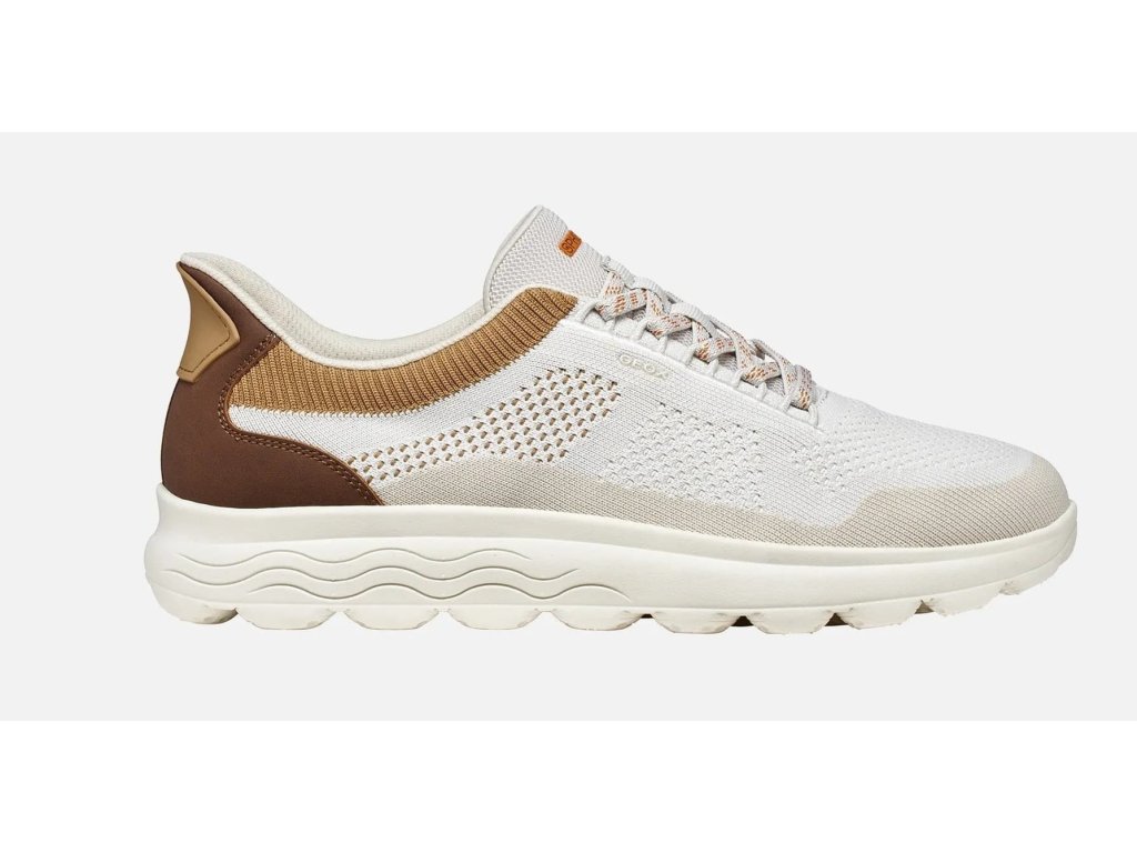 Geox Spherica Plus Off White/ Brown v béžovo/ hnědé barvě. Pánské sportovní boty od výrobce Geox, jsou velmi lehké a prodyšné, vhodné na sport i volný čas. Prodyšný textil. Lehká podešev, která navíc tlumí nárazy díky technologii Spherica Plus. Respira podrážka odvádí pot a přitom je díky membráně nepromokavá. Fastin nazouvání zajistí snadné obouvání (gumičky místo tkaniček, zpevněný opatek).