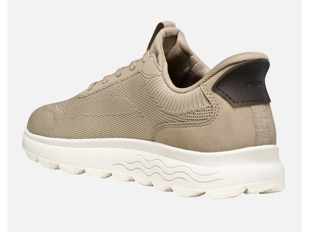 Geox Spherica Plus Sand v béžové barvě. Unisex sportovní boty od výrobce Geox, jsou velmi lehké a prodyšné, vhodné na sport i volný čas. Prodyšný textil. Lehká podešev, která navíc tlumí nárazy díky technologii Spherica Plus. Respira podrážka odvádí pot a přitom je díky membráně nepromokavá. Fastin nazouvání zajistí snadné obouvání (gumičky místo tkaniček, zpevněný opatek).