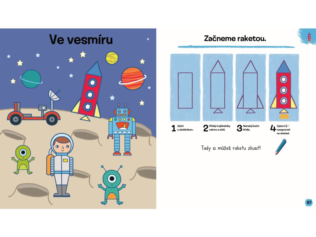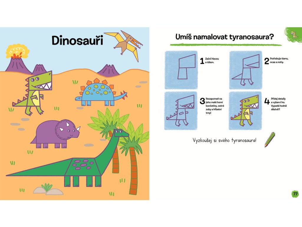 V několika snadných krocích se děti naučí namalovat spoustu krásných věcí – zvířata, dinosaury, pohádkové postavy i dopravní prostředky. Tahle skvělá knížka jim ukáže, jak ze základních tvarů a linií vytvořit krásné obrázky. Pokud neumíte skvěle kreslit, můžete se učit s dětmi i vy. Malování nebylo nikdy jednodušší – a zábavnější! Všechny obrázky si můžete ihned vyzkoušet – na papír nebo přímo do knížky. Obrázky k dokreslení a volné stránky nabízejí spoustu prostoru pro vlastní fantazii. Nikdy není pozdě naučit se malovat!
