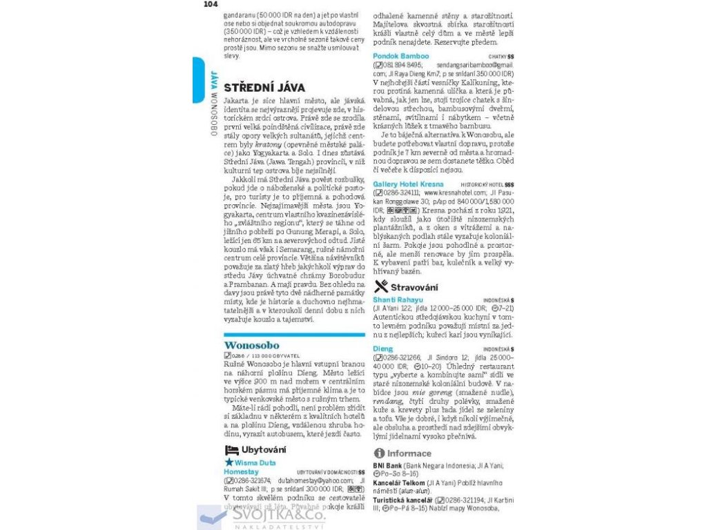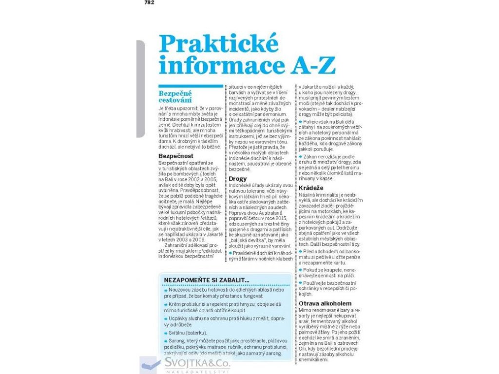 "Indonésie nabízí nejlepší dobrodružství na světě; její krása je stejně rozmanitá jako její obyvatelé. Večer si můžete užít světovou zábavu a další den se ocitnout mimo vyšlapané trasy v tropické idyle." S tímto průvodcem z proslulé edice Lonely Planet se dostanete přímo k srdci země! – Úžasné zážitky – inspirativní fotografie, informace o aktivitách a přehled nejzajímavějších míst – Naplánujte si cestu – užitečné tipy a nejlepší doporučené trasy vám dávají možnost sestavit si cestu podle svých představ – Mimo známé trasy – naši autoři pro vás odhalují skrytá místa, čímž vám pomáhají zažít něco jedinečného Zvláštní kapitoly – Místní kuchyně – Outdoorové aktivity – Zodpovědné cestování – Na cestě s dětmi Říkáme to tak, jak to je Našim informacím můžete věřit, protože autoři Lonely Planet osobně navštěvují místa, o nichž píší. Nepřijímáme žádné protislužby za pozitivní hodnocení, a můžete se proto spolehnout na to, že jsme absolutně objektivní. Rok vydání: 2016Doplňkové parametry