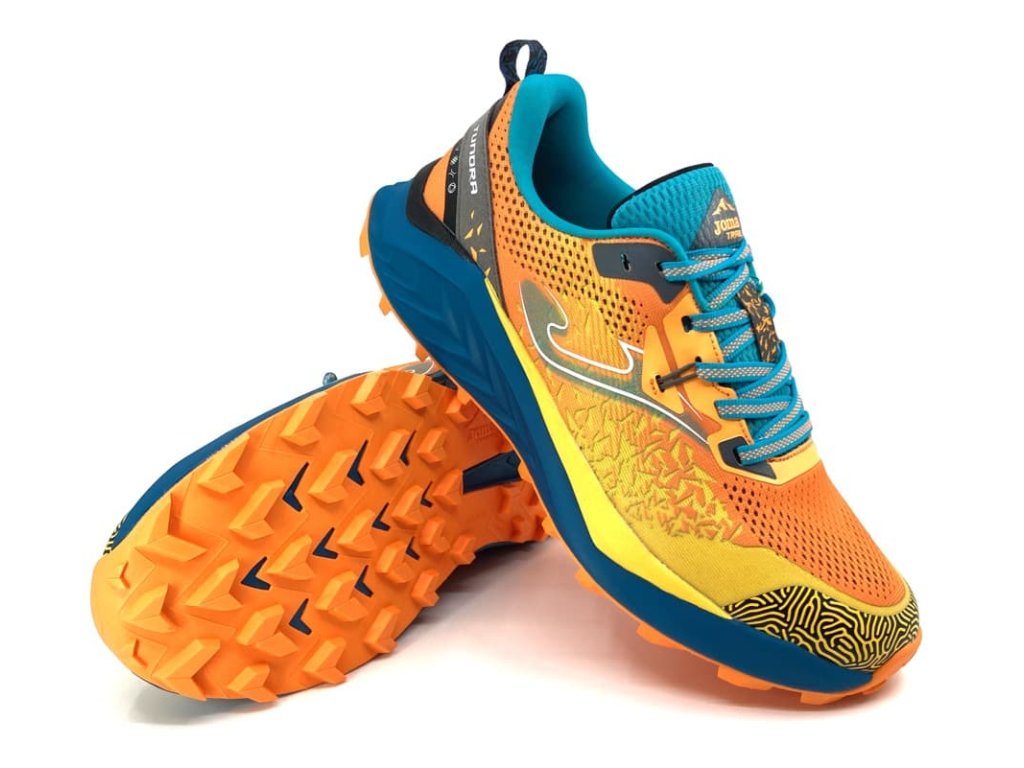 Joma Tundra 2608 Orange Blue v modro-oranžové kombinaci. Trailové tenisky jsou vhodné na sportovní venkovní aktivity, běhání, do hor, ale i na normální chození venku. Jsou vhodné také do terénu, trailová podrážka s hrubým vzorkem tlumí nárazy a zároveň jsou prodyšné. Vhodné od jara až do podzimu.