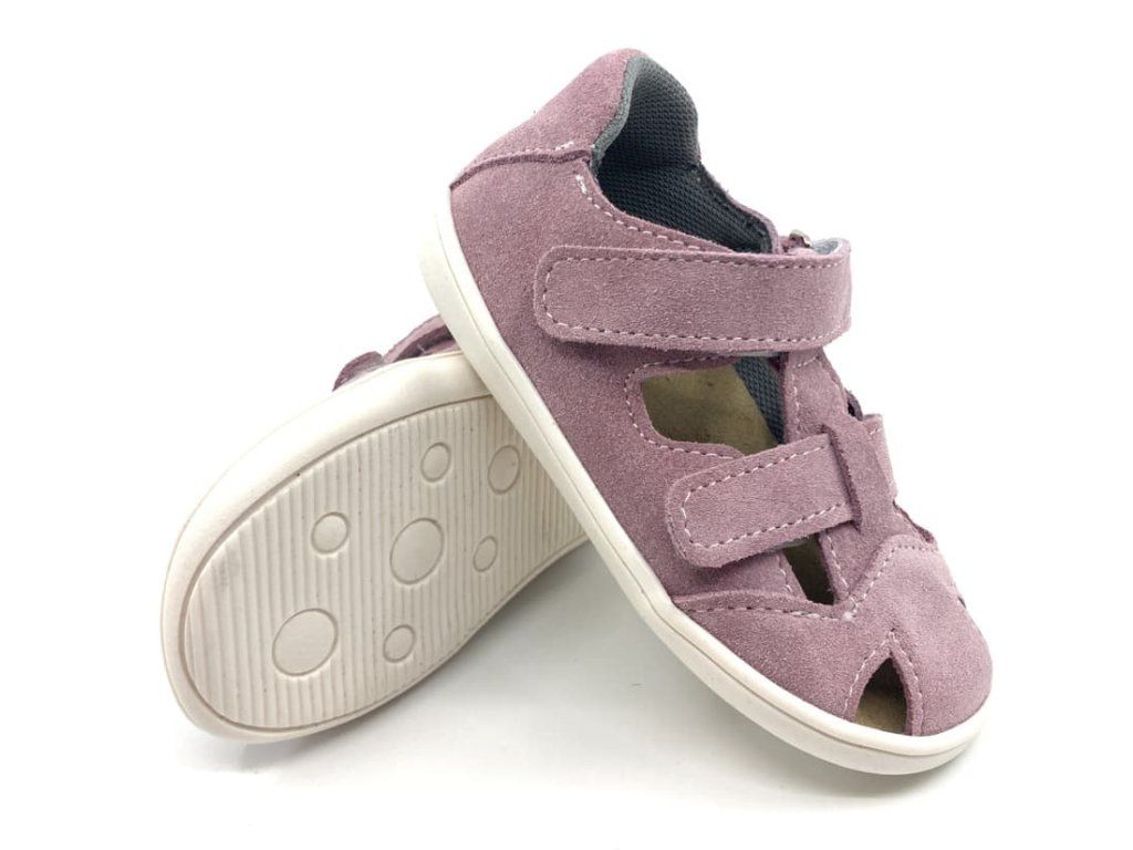 Lehké a ohebné sandálky Jonap 042 z broušené kůže ve starorůžové barvě. Sandálky mají uzavřenou špičku, která chrání prstíky před okopáním.