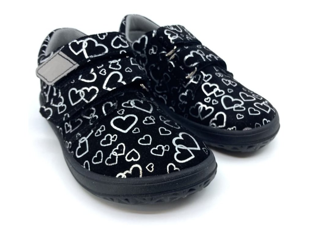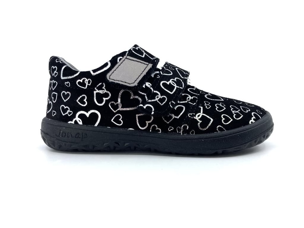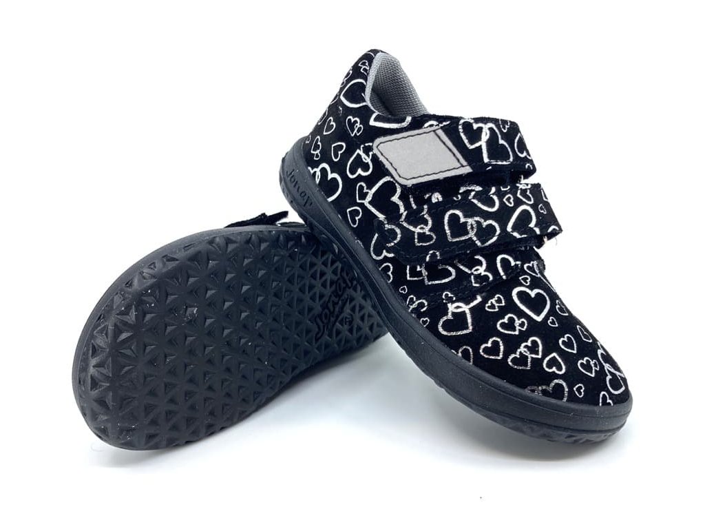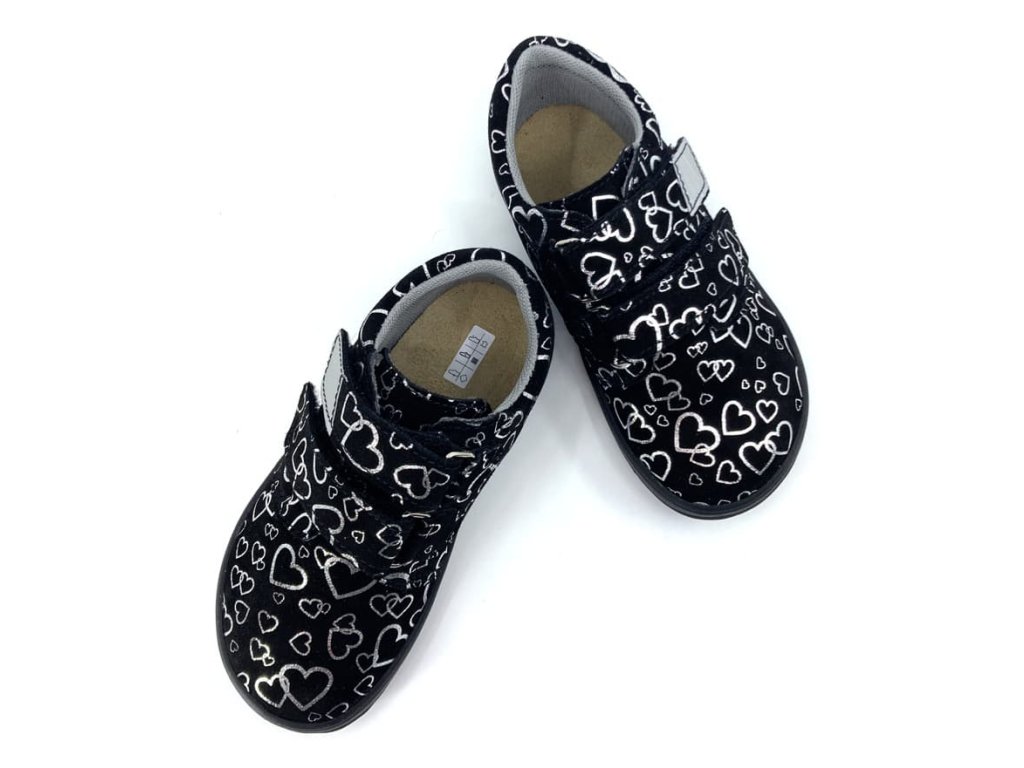 Barefoot boty značky Jonap B1 v černé barvě s dívčím motivem srdíček