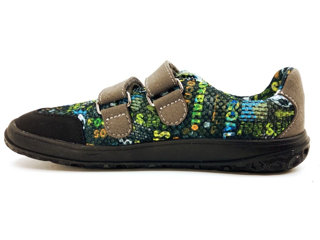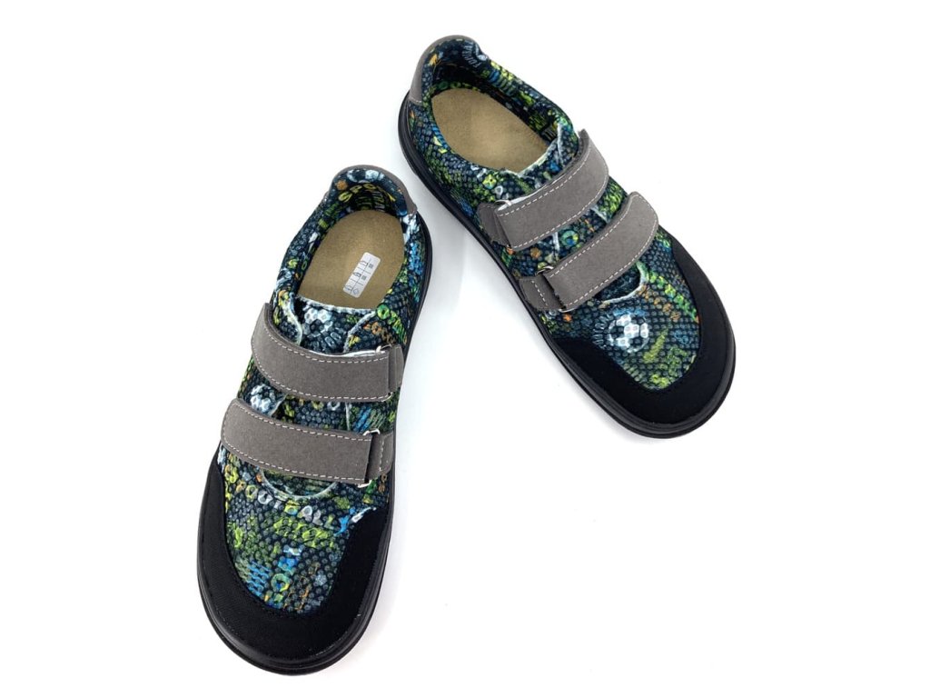 Prodyšné barefoot tenisky Jonap B18 Černý fotbal černé barvy z textilního materiálu, který je perfektně prodyšný a skvěle zvládne i parné počasí. Odolnost zajišťuje okop z mikrovlákna. Botu přitáhnete k noze dvěma suchými zipy. Přední část boty má výraznější prostor pro prsty. Jsou tedy vhodné i pro dominatní palec. Kolem kotníku se dají krásně utáhnout.