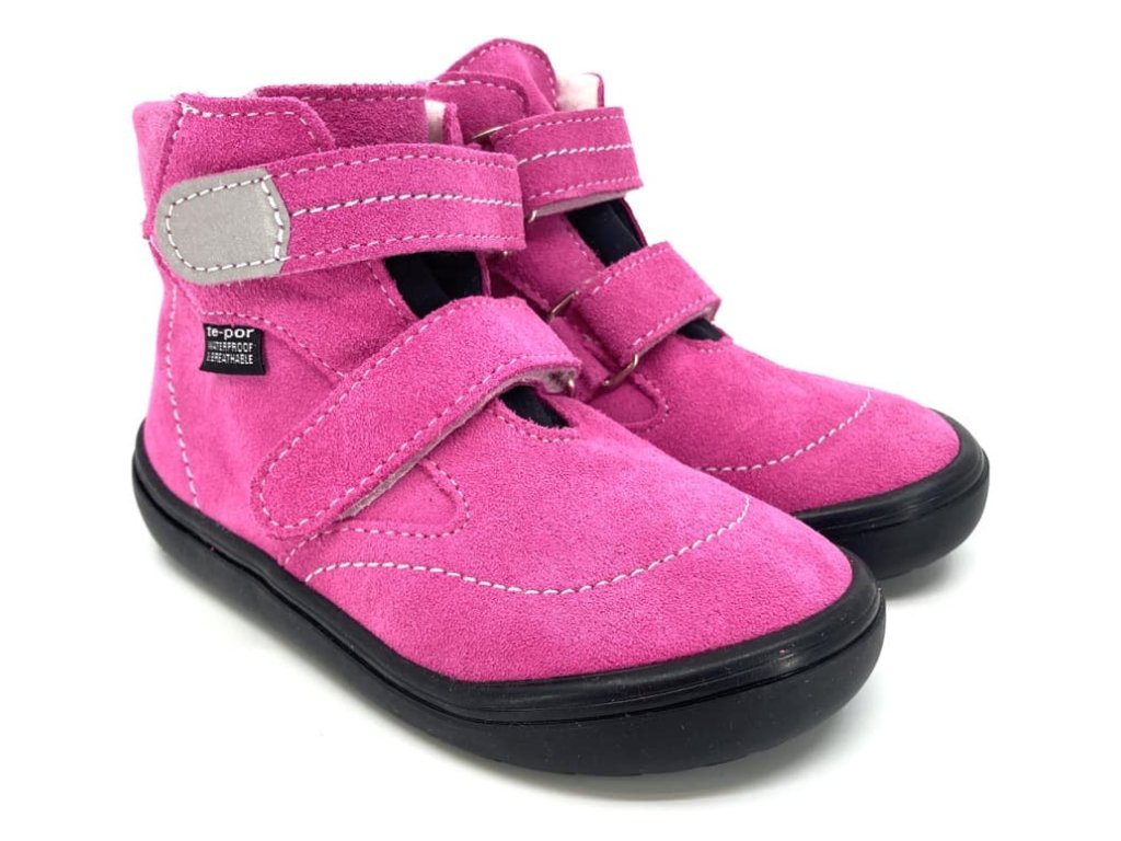 Dětské zimní barefoot boty Jonap B5S VLNA 2025/2026 v dívčí růžové barvě. Boty jsou vyššího střihu, končí několik cm nad kotníkem. Vnější vrstva je z broušené kůže (velur), vnitřek je zateplený PRAVOU OVČÍ VLNOU, která výborně tepelně izoluje a navíc krátně dýchá, ale některé děti může "kousat". Na poměry zimních barefoot bot tak jsou opravdu teplé, a díky membráně Te-Por i nepromokavé.