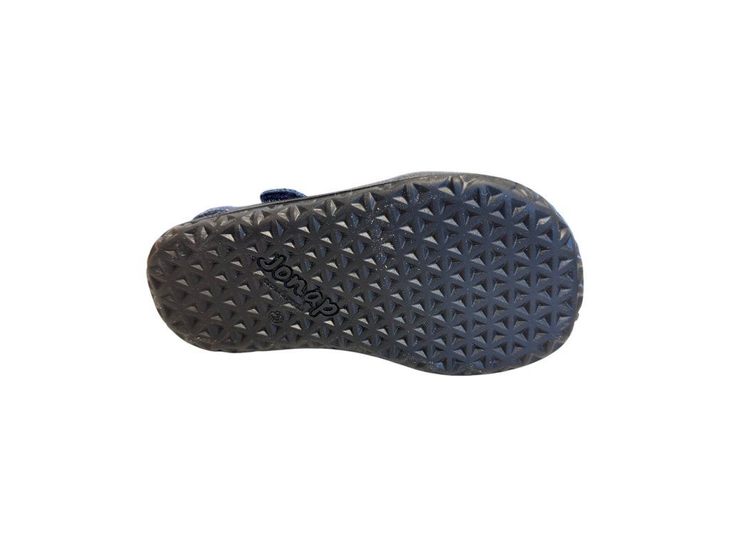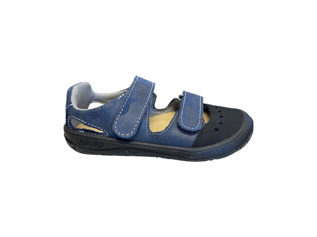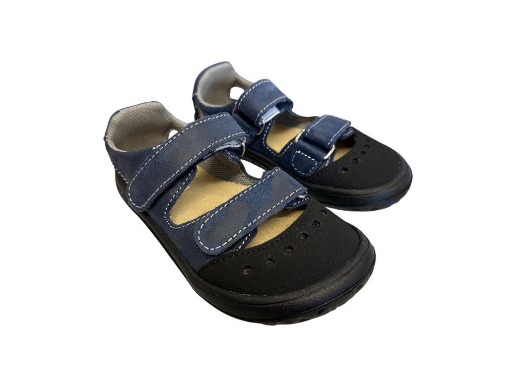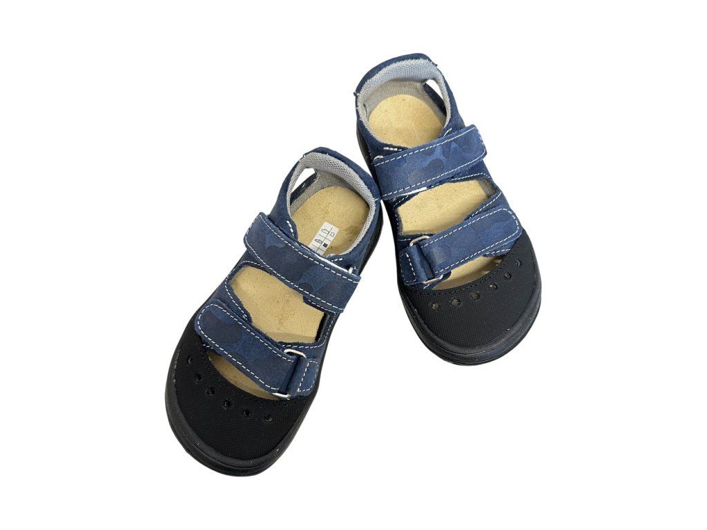 Kožené dětské barefoot sandálky Jonap Fella modrý maskáč v modré barvě se špičkou z pogumované kůže, která chrání botu proti okopání.