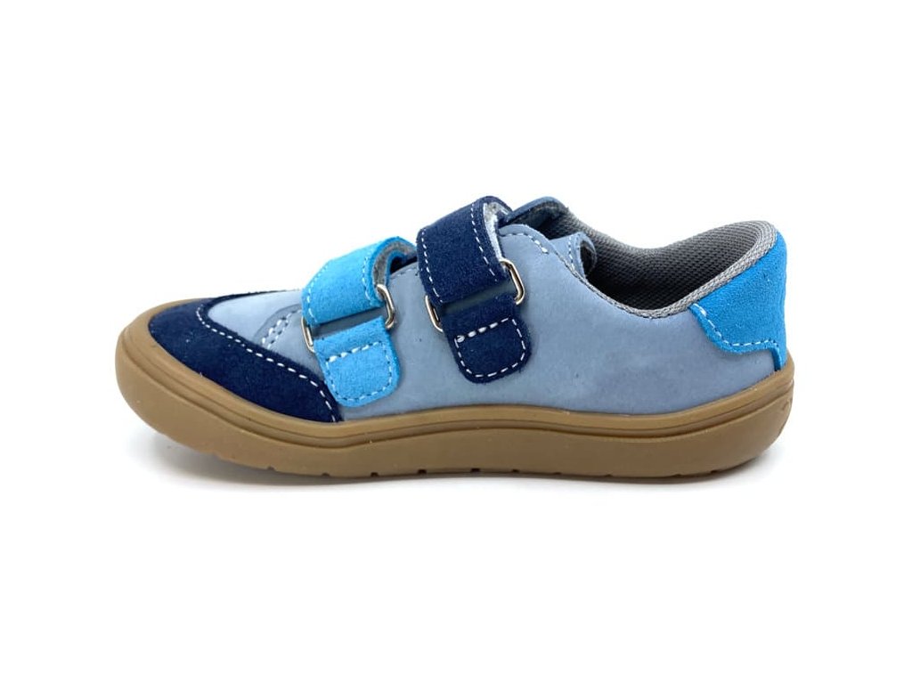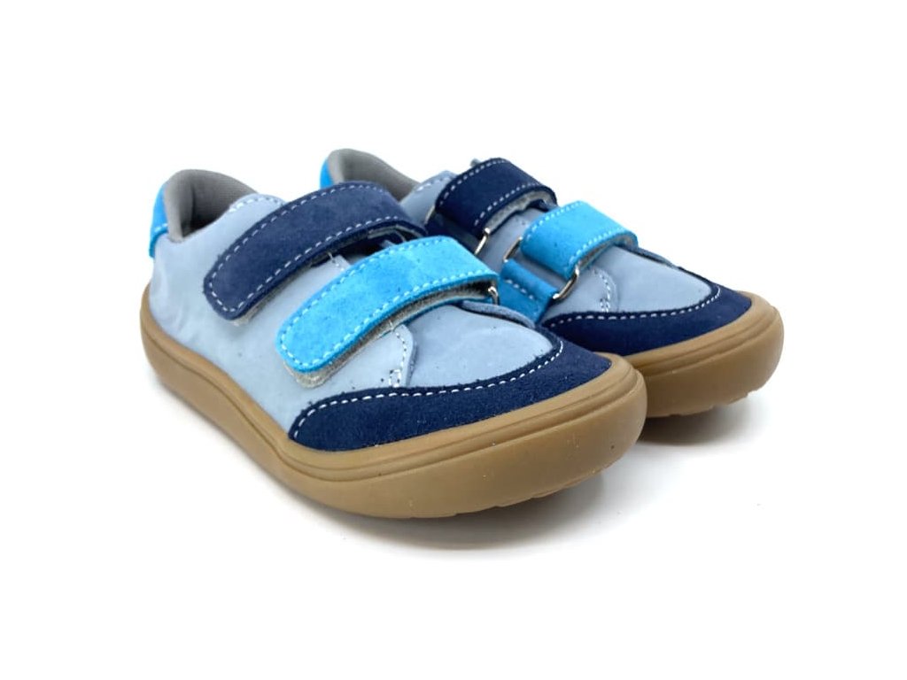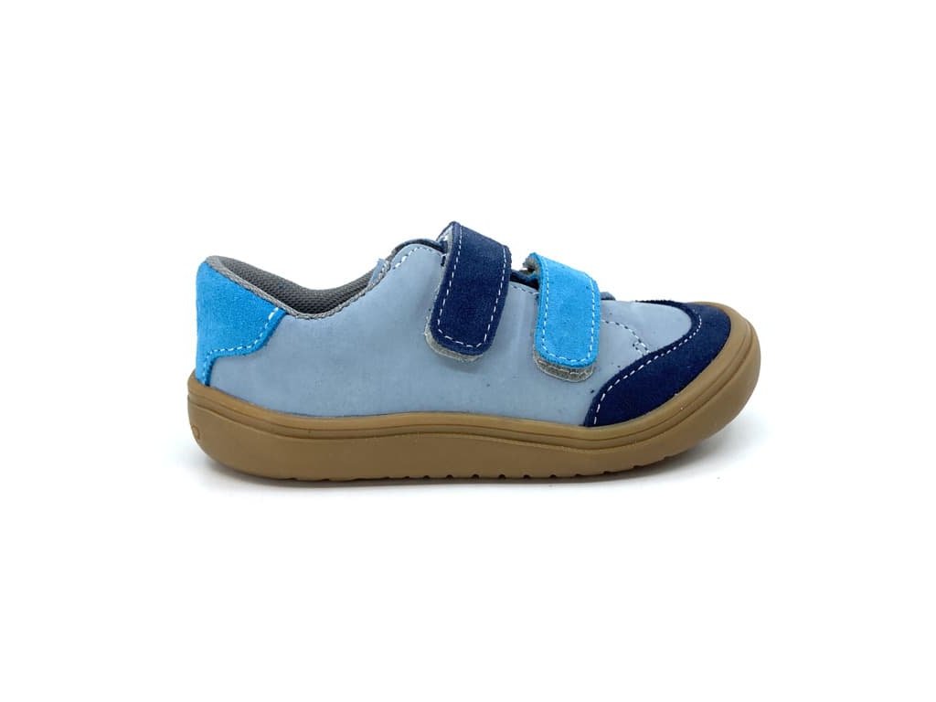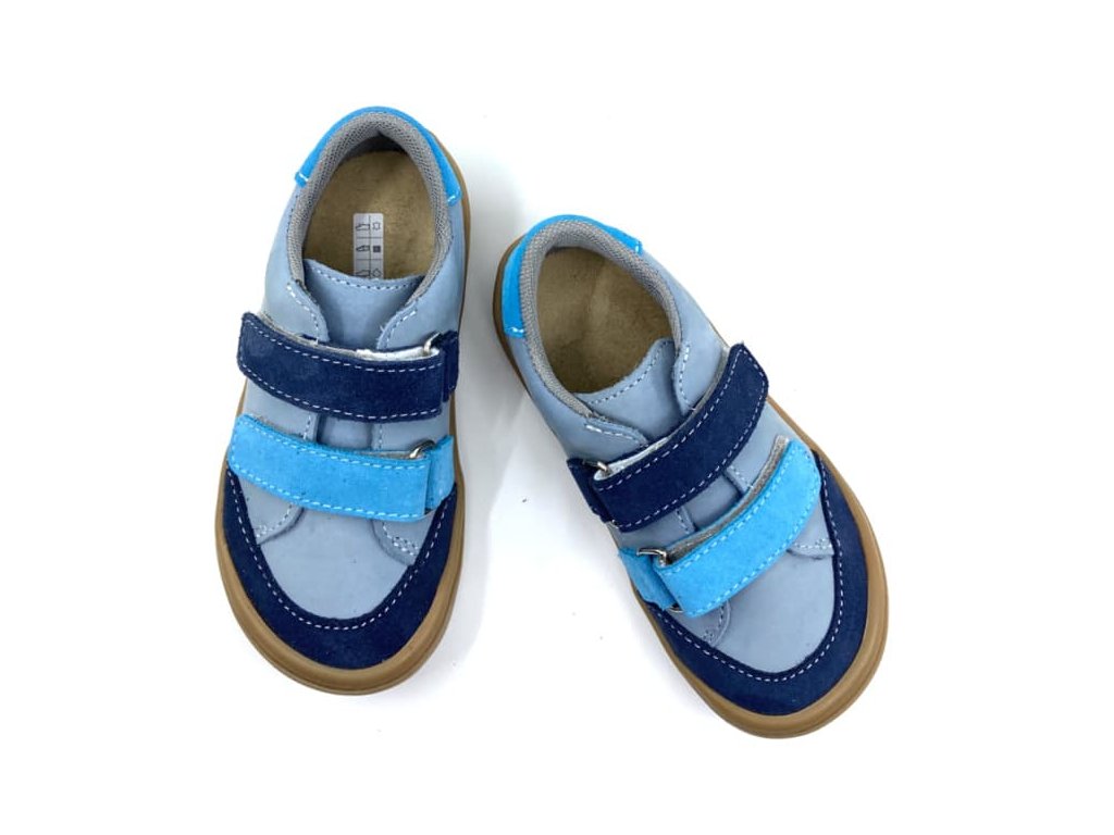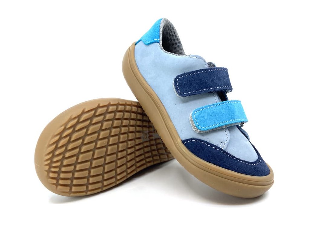 Kožené barefoot boty Jonap Joy Kids - Šedo-tyrkysová. Tyto barefoot tenisky jsou na nové, odolné podrážce z pravé gumy (2024), která je měkká a výborně ohebná všemi směry.