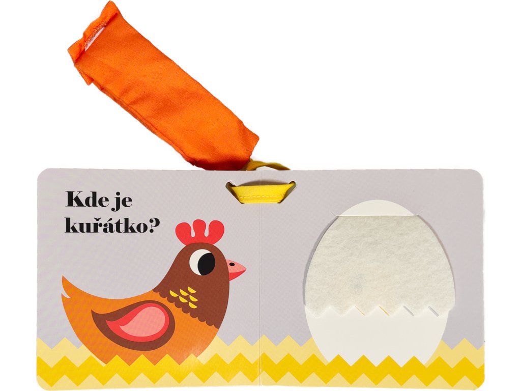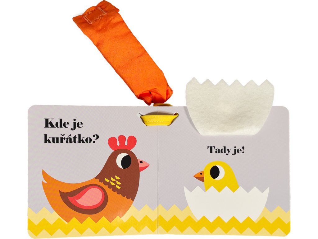 Knížka vhodná pro nejmenší děti pro jejich první seznamovaní se světem. Rozvíjí jejich zrak, hmat a motorické schopnosti. Děti budou hledat schovaná zvířátka, měkká plstěná okénka umožní dětem zlepšovat poznávání světa hmatem. Na konci knihy na děti vykoukne překvapení. V malém kulatém zrcátku uvidí… Kohopak? No přece sebe! Díky malým rozměrům a připevnění ke kočárku je tato knížečka skvělým parťákem na cesty.Doplňkové parametry