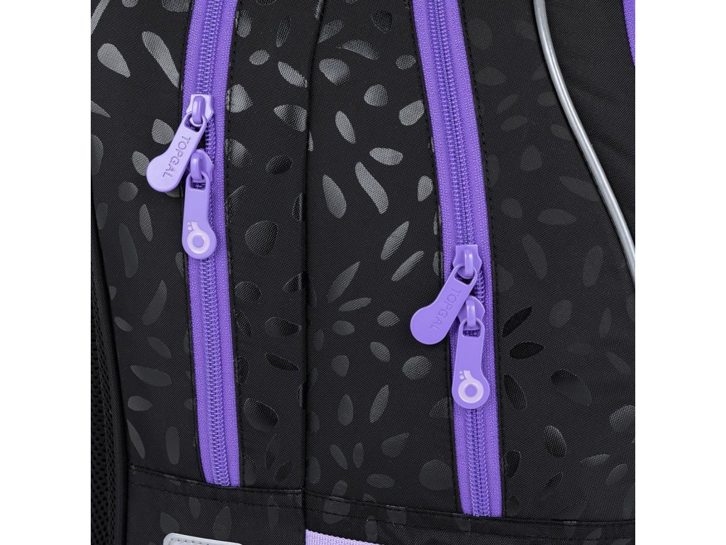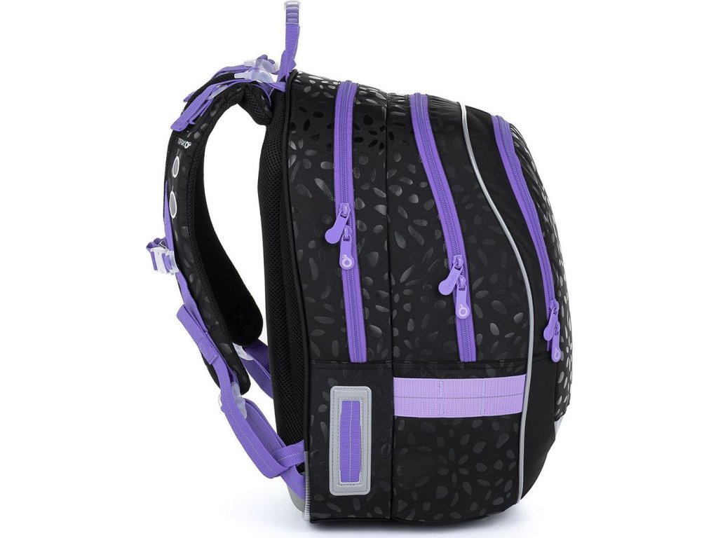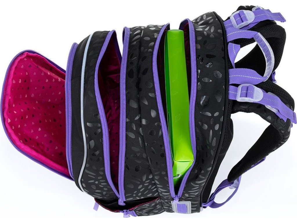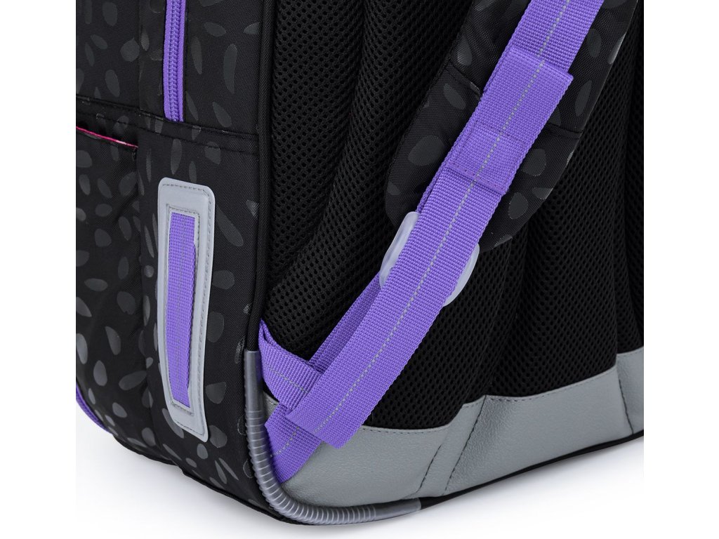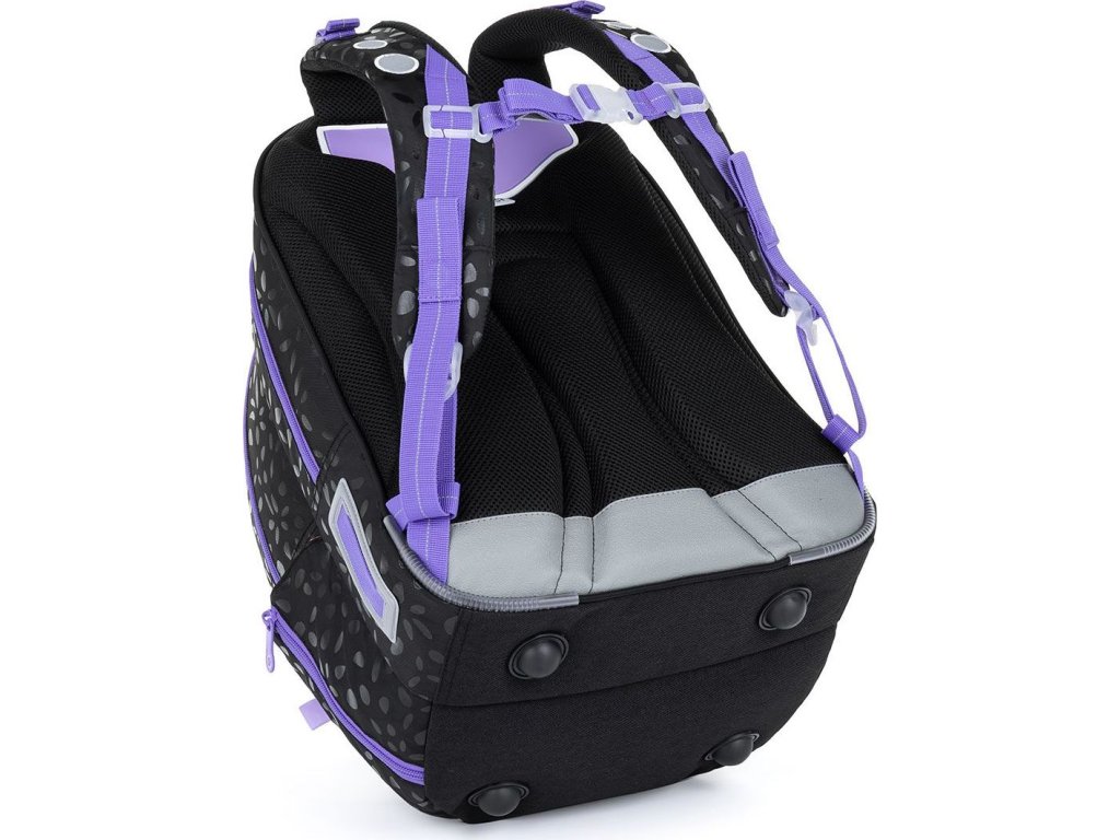 Dvoukomorový batoh CODA vyhovuje všem vyšším školačkám na prvním stupni ZŠ (doporučujeme od 125 cm). Svým objemem vydrží bez problémů až na druhý stupeň. I proto jsme jej navrhli v klidných tónech černé, oživené fialovými zipy a lesklými prvky.