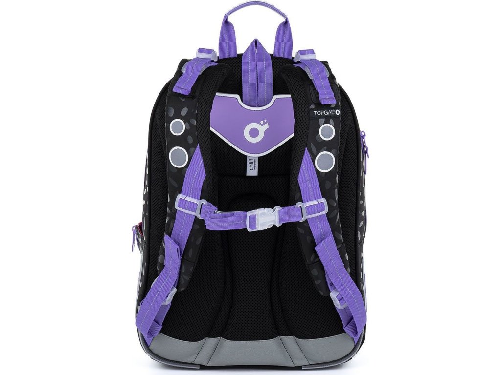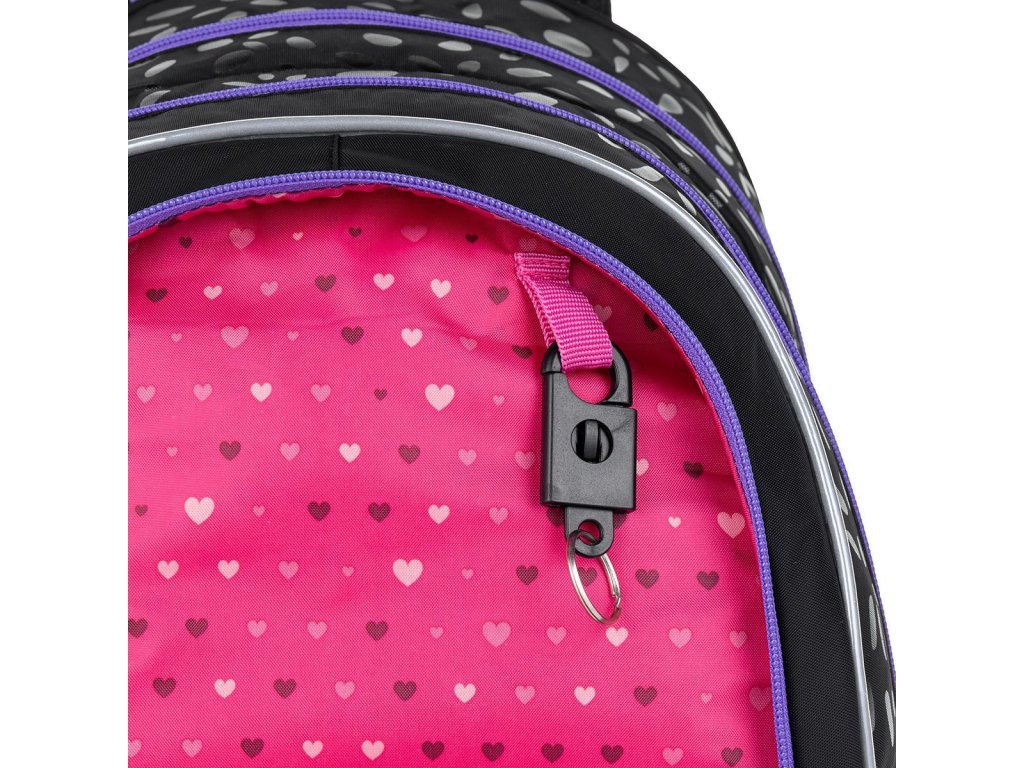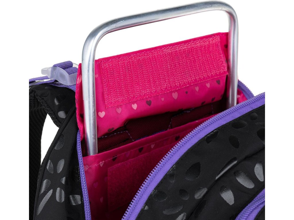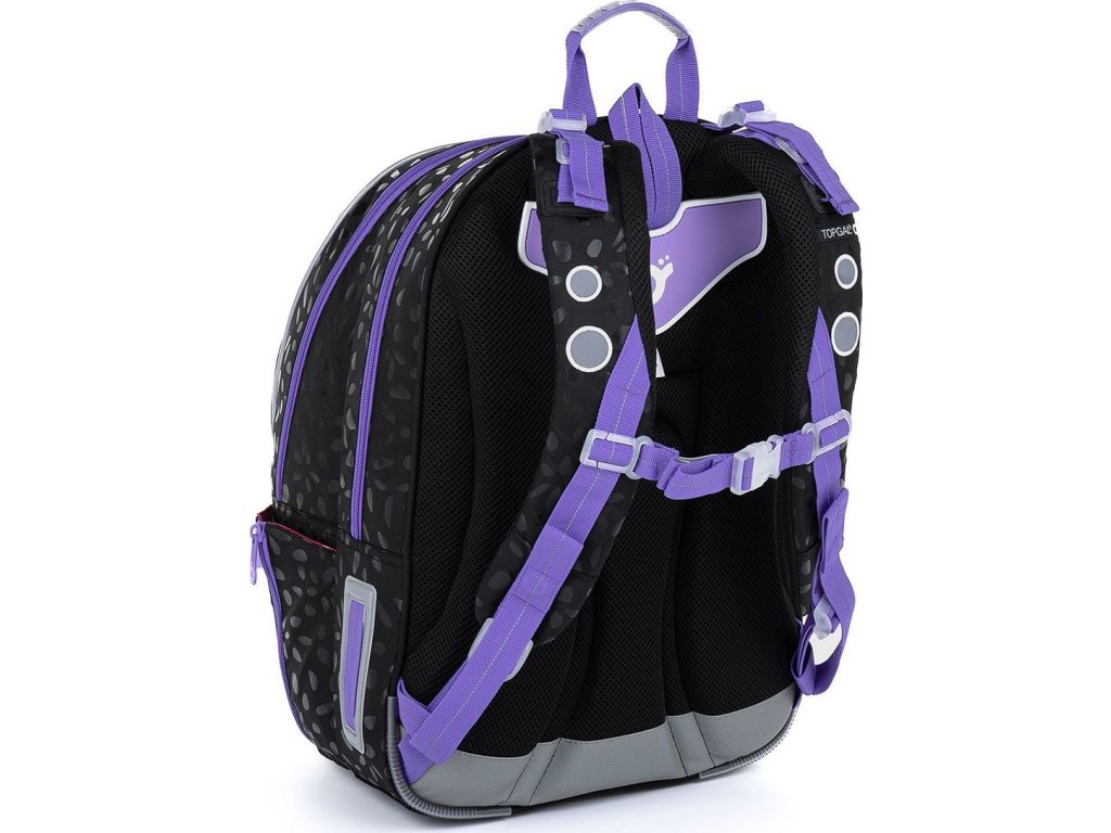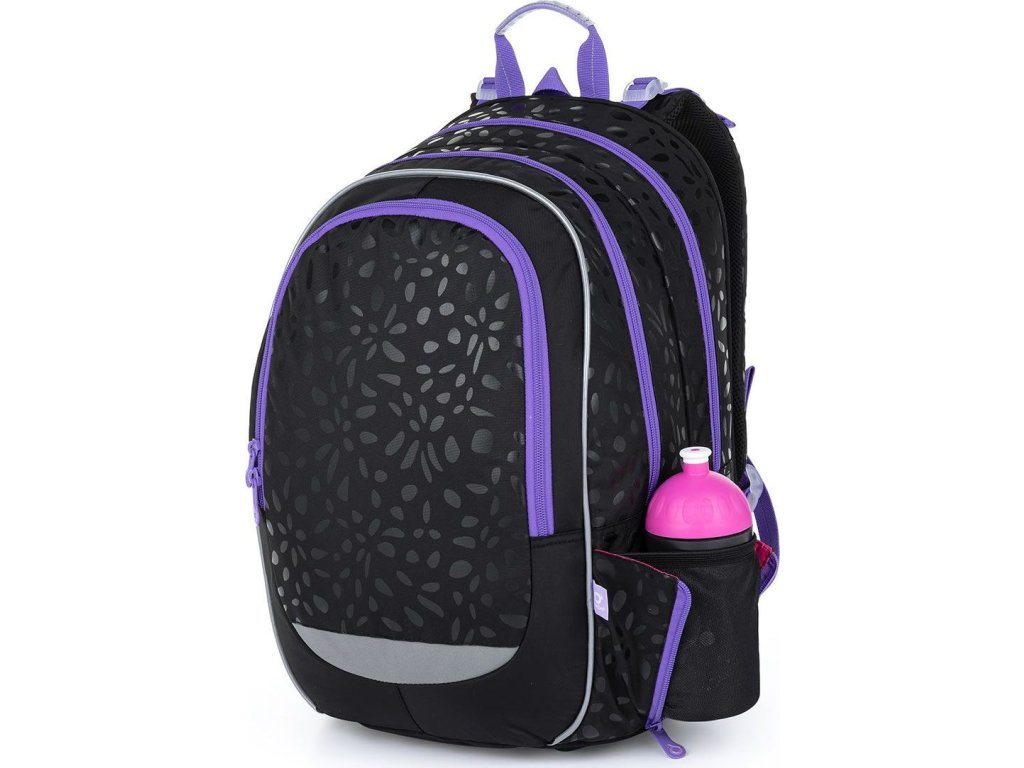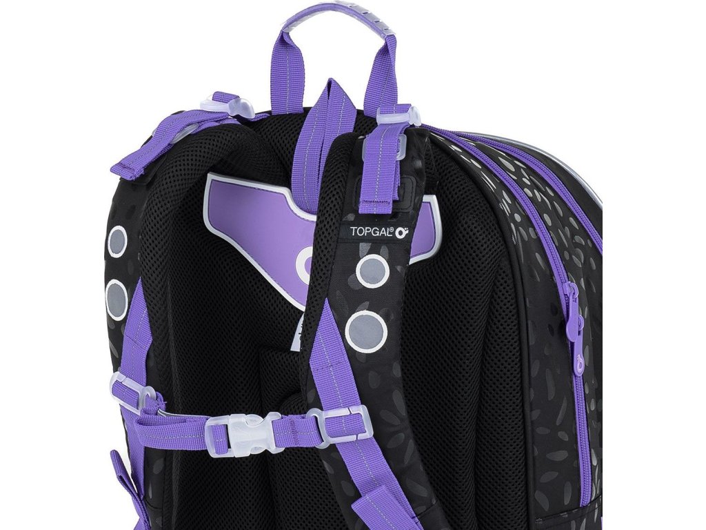 Dvoukomorový batoh CODA vyhovuje všem vyšším školačkám na prvním stupni ZŠ (doporučujeme od 125 cm). Svým objemem vydrží bez problémů až na druhý stupeň. I proto jsme jej navrhli v klidných tónech černé, oživené fialovými zipy a lesklými prvky.