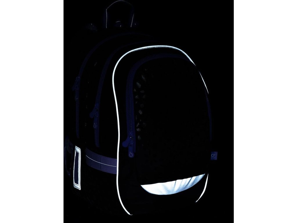 Batoh má dvě hlavní objemné komory. Zadní komora batohu je užší než přední, radíme do ní umístit nejtěžší učivo a směrem dopředu odlehčovat. V přední (širší) komoře je umístěna síťová kapsa na zip a jmenovka.