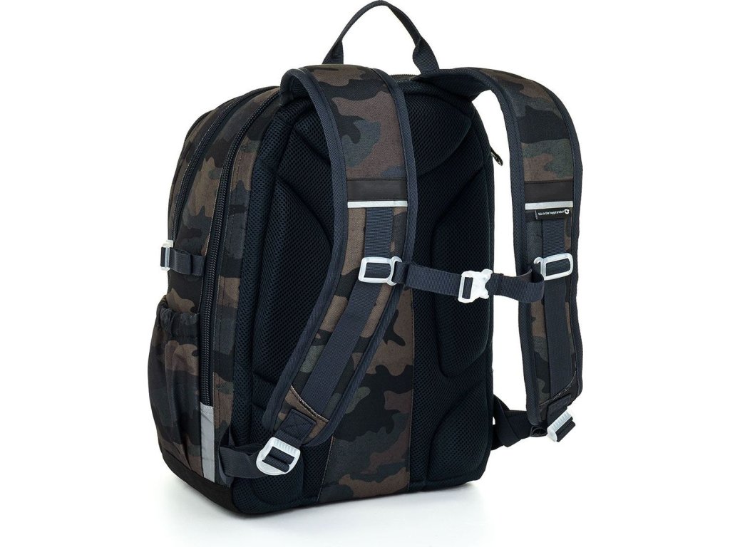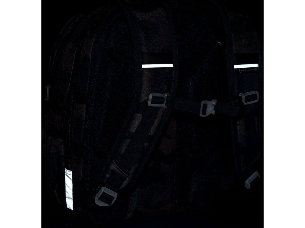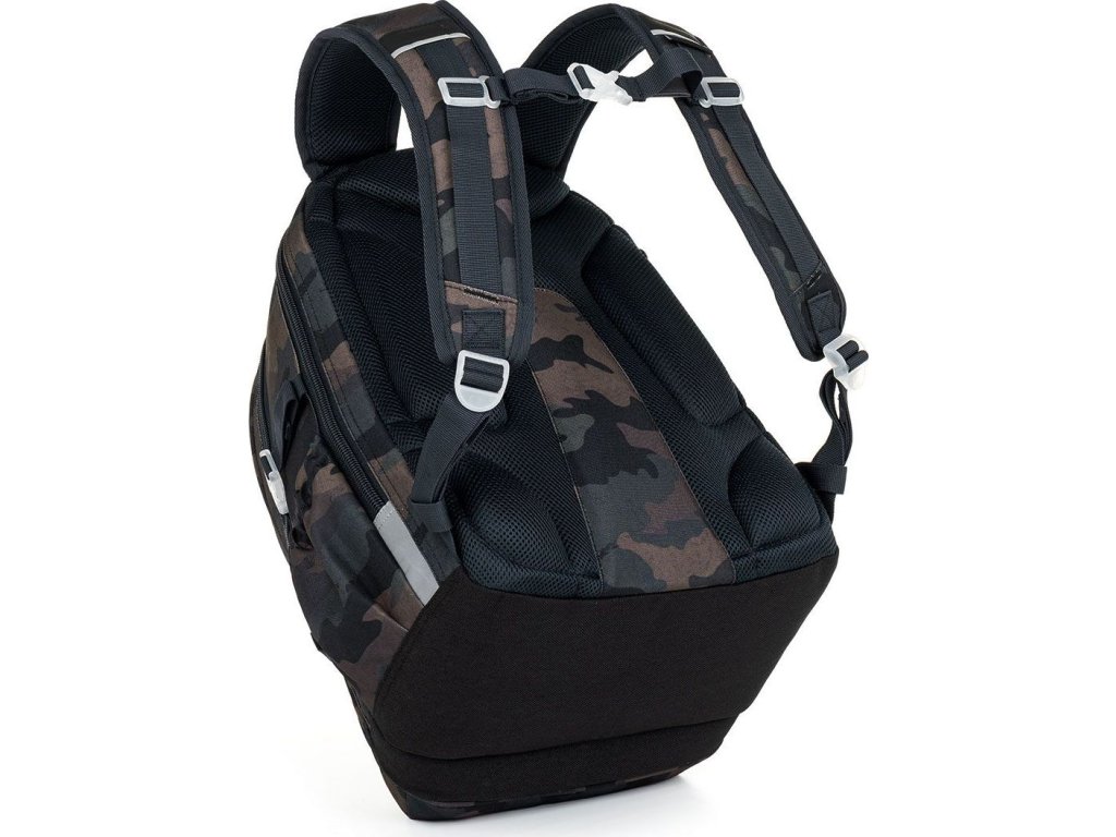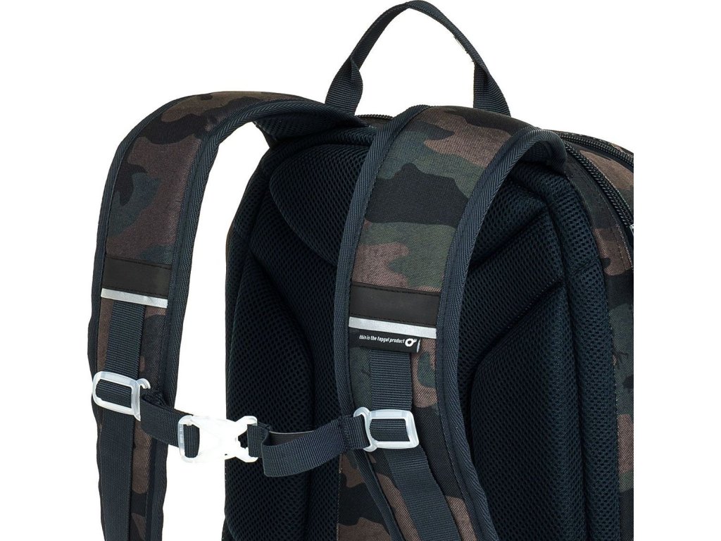 Dvoukomorový batoh s polstrovanými, anatomicky tvarovanými zády je pevný díky lehké hliníkové výztuze. Součástí velké komory je polstrovaná kapsa na notebook i tablet a menší na mobil či powerbanku. Nesmrtelný maskáč potěší všechny vojáky i přírodomilce.