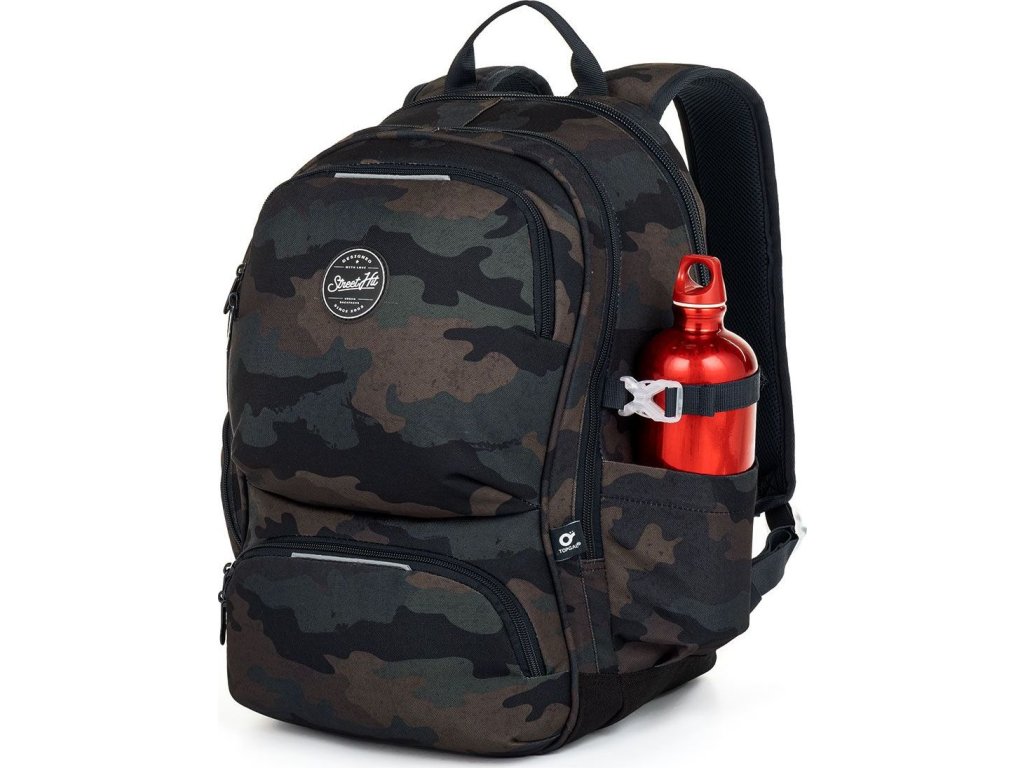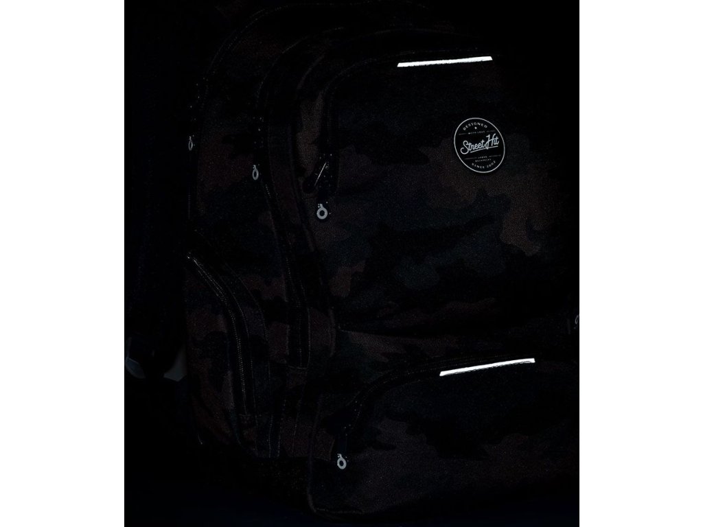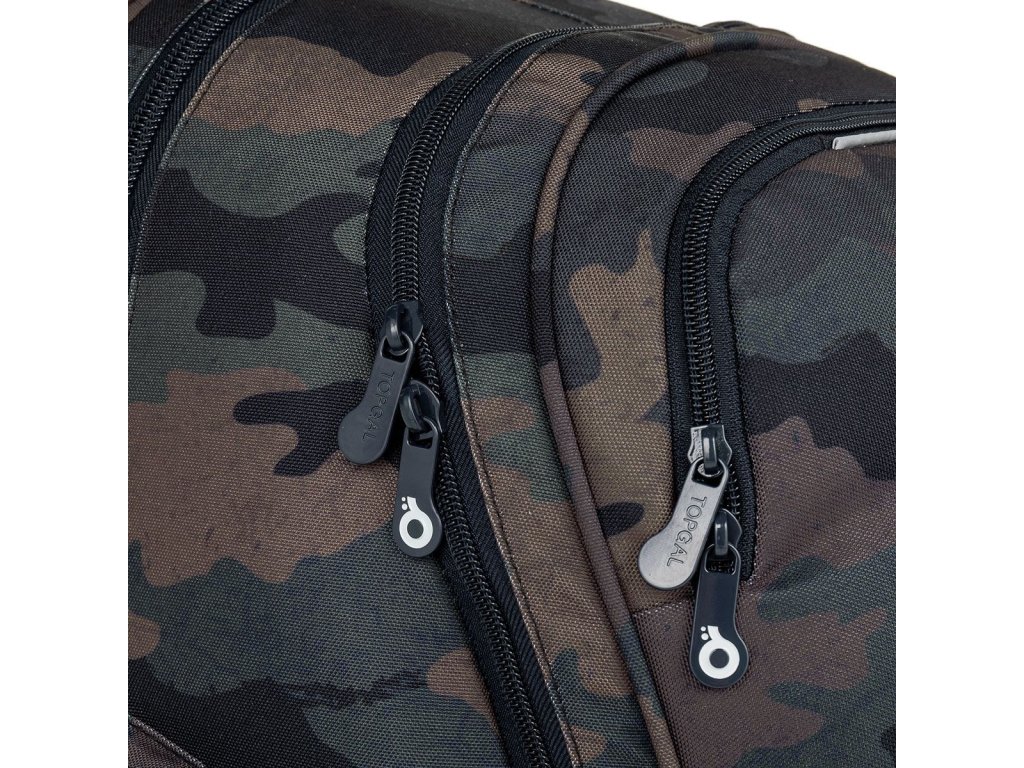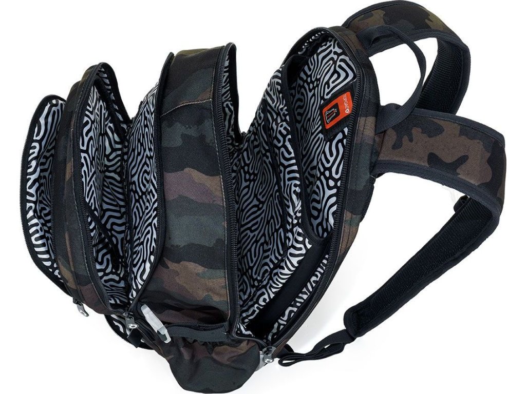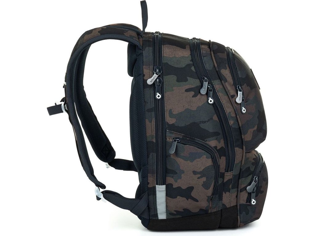 Dvoukomorový batoh s polstrovanými, anatomicky tvarovanými zády je pevný díky lehké hliníkové výztuze. Součástí velké komory je polstrovaná kapsa na notebook i tablet a menší na mobil či powerbanku. Nesmrtelný maskáč potěší všechny vojáky i přírodomilce.