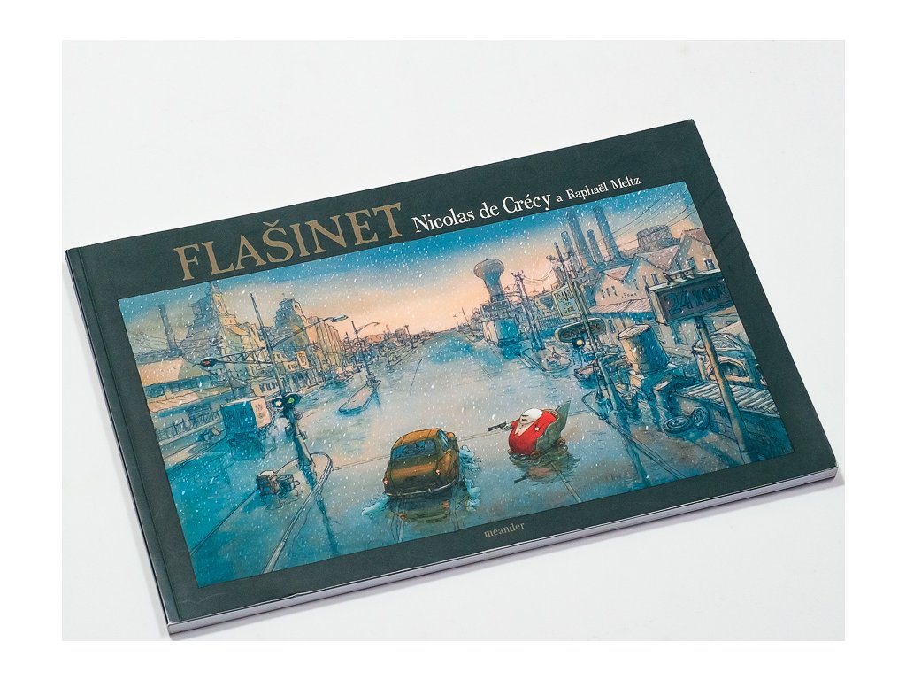 Flašinet měl být animovaný superfilm, na němž francouzský komiksový mág Nicolas de Crécy, který hned po škole nastoupil do Disneyho studia, pracoval několik let. Čeští čtenáři znají již de Crécyho parodickou variaci na superhrdinské příběhy v komiksovém albu Pan Ovocňák, postapokalyptickou Dobu ledovou (Meander, 2008), kterou jsme vydali již ve třetím dotisku, nebo úsměvného Krále sjezdovky.