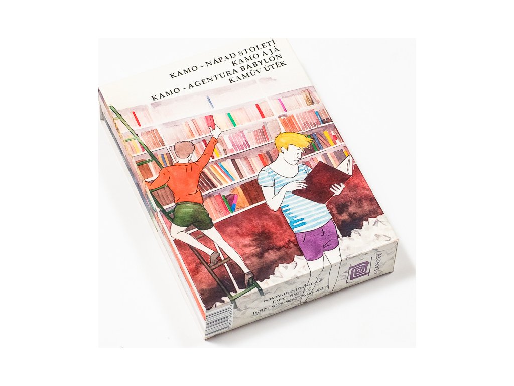 Souborné vydání oblíbené tetralogie francouzského romanopisce Daniela Pennaca, která nám důvěrně připomíná Sempého Mikulášovy patálie. Letos ze znalostí reálií knihy soutěžilo vybraných 140 škol v Souboji čtenářů. Kamo je nejslavnější dětský román plný fantazie a dobrodružství kluků z prvního ročníku lycea. V Meandru postupně vyšly Kamo – nápad století, Kamo a já, Kamo – Agentura Babylon a Kamův útěk. Za svá díla získal Pennac celou řadu ocenění. Je mimo jiné autorem nejznámější obsáhlé knižní eseje o tom, proč děti dnes už vůbec nečtou a jak s nimi číst – Jako román. Vtipné kresby v Kamovi jsou od mladého malíře Tadeáše Kotrby.