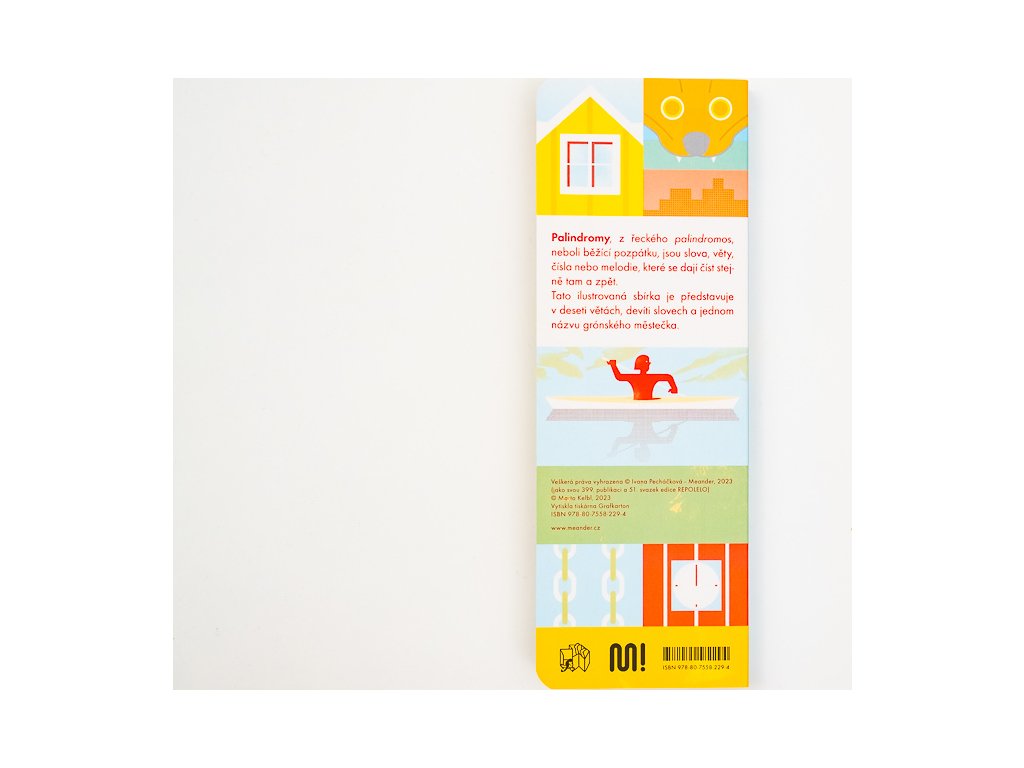 Děd. Kajak. Kuna nese nanuk… to jsou palindromy, slova nebo věty, které se čtou stejně tam a zpět. Nadějná ilustrátorka Marto Kelbl přichází ve své autorské knize s palindromy, které zaujmou, pobaví, a po přečtení už navždy uvíznou v paměti. Každý z nich navíc doprovází originální, zábavná ilustrace.