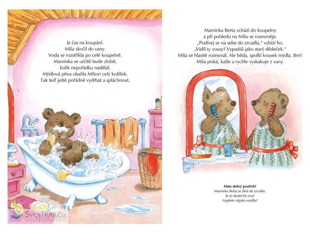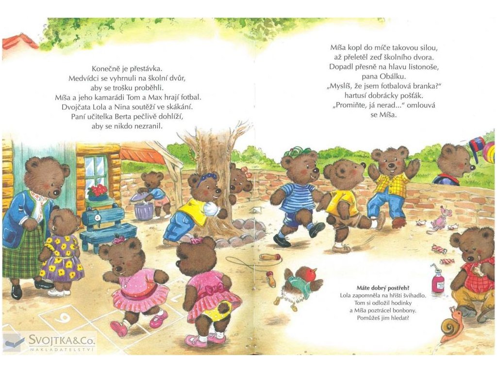 Spolu s neposedným medvídkem Míšou se dozvíte, jaké to je jít poprvé do školy, jaké druhy sportů si medvídek vyzkoušel a vypravíte se k rodině medvídků na návštěvu. Tato knížka je určena pro nejmenší čtenáře je napsána velkými písmeny a je doplněna půvabnými barevnými ilustracemi. Obsahuje i zajímavé hádanky, které můžete spolu s neposedným medvídkem vyřešit, a úkoly k procvičení postřehu, ale i k zasmání.