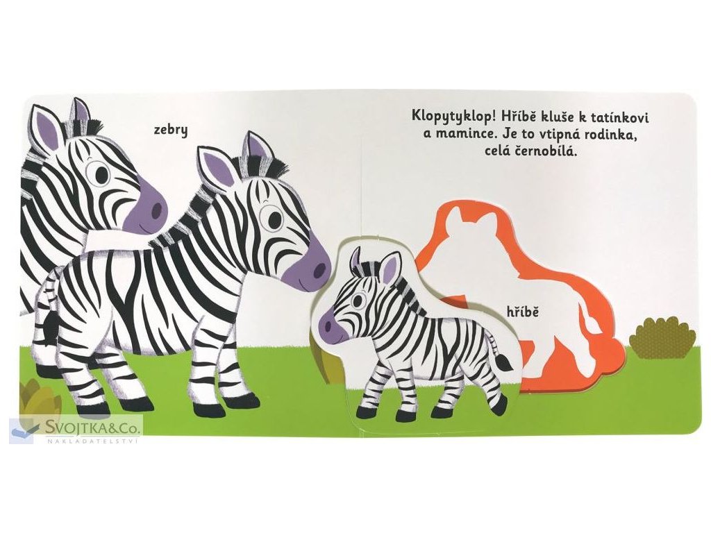 Sloní hrátky, ztřeštěné lvíče a dovádění hříběte zebry… slož a zase rozlož! Uč se se zvířátky. Tato knížka obsahuje velké kusy puzzle a je zaměřená na mláďátka ze savany. Roztomilé ilustrace a krátké popisky jsou ideální jak na hraní, tak i objevování a dozvídání se nových informací o mláďatech z divoké savany. Velké a pevné kusy puzzle jsou vhodné pro dětské ruce a zaručí, že přežijí nejedno poutavé hraní. Toto leporelo je vhodné pro nejmenší čtenáře, protože procvičí jak jemnou motoriku, tak napomůže s rozvojem schopností skládat a přiřazovat správné objekty dohromady.Knížka s prvky Montessori.
