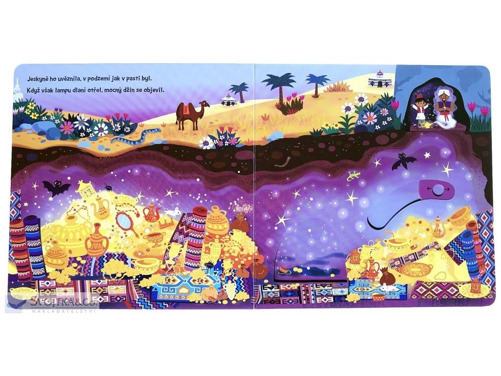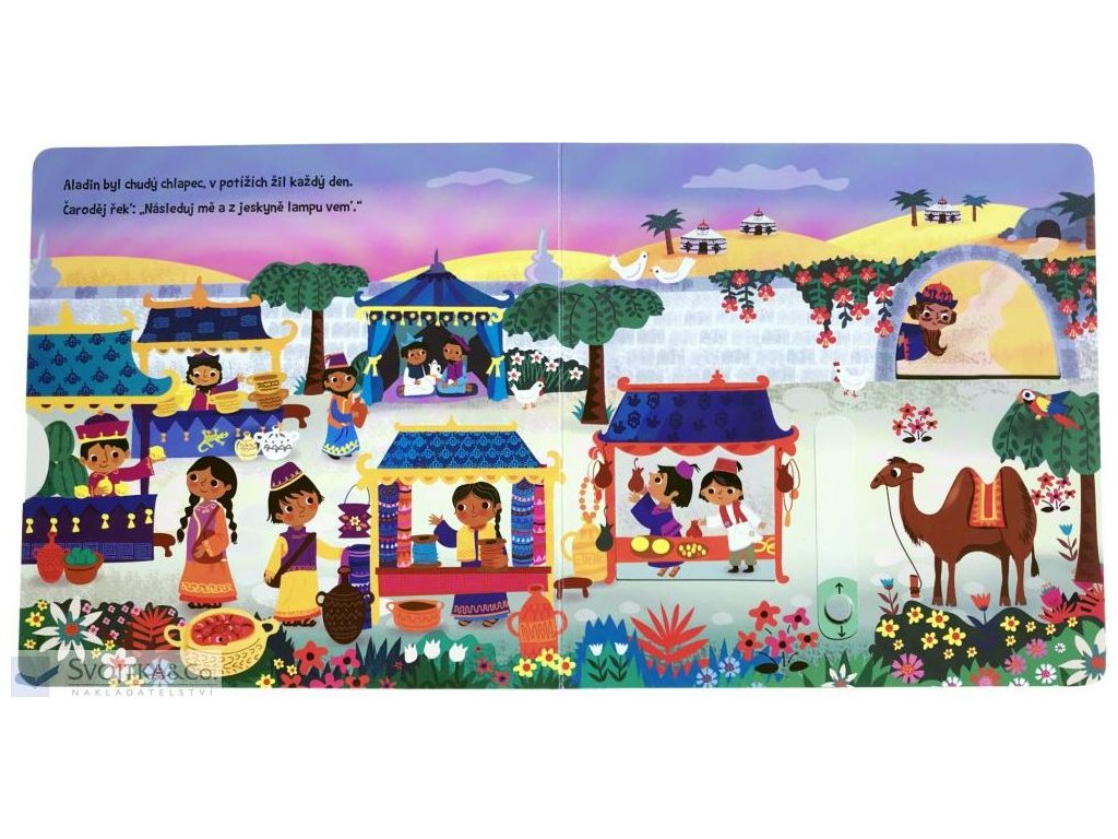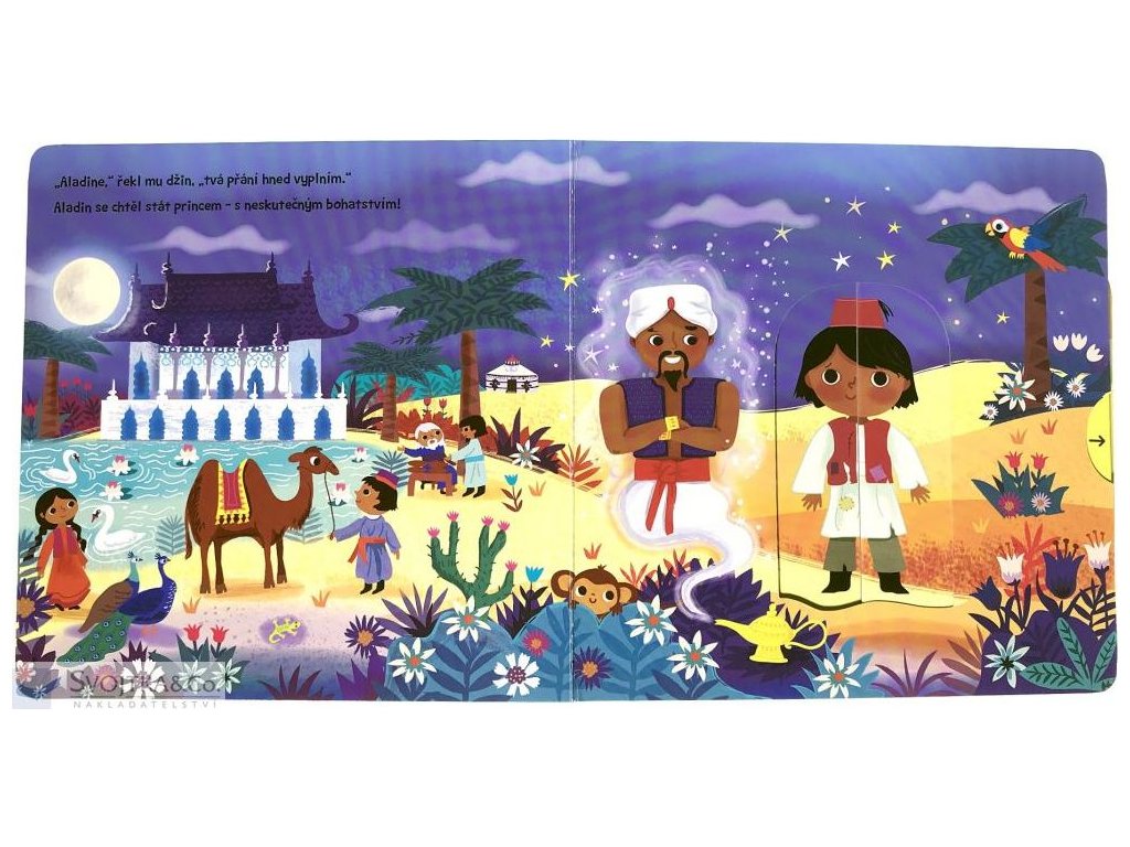 Toto malé dětské pohádkové leporelo s pevnými stránkami a pohyblivými obrázky je určeno dětem od jednoho roku a najdete v něm krátkou veršovanou pohádku o Aladinovi a kouzelné lampě. Při jejím poslouchání si děti mohou procvičovat svou jemnou motoriku a zároveň si pohádkový příběh oživit. Tak vzhůru do čtení! Minipohádka Aladin už na vás čeká!Doplňkové parametry