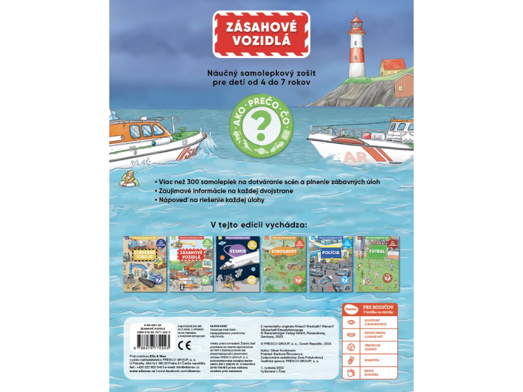 Jak? Proč? Co? V tomhle naučném samolepkovém sešitě pro děti od 4 do 7 let najdete odpovědi snad na všechny zvídavé otázky týkající se různých druhů zásahových vozidel. Na každé dvoustraně se dočtete spoustu zajímavostí, a navíc máte k dispozici přes 300 samolepek k dotváření scén a plnění zábavných úkolů! Ty zapeklitější vám dají možná trošku zabrat, ale žádný strach – na konci knížky nechybí malá nápověda…
