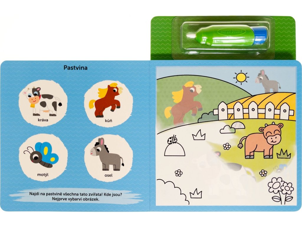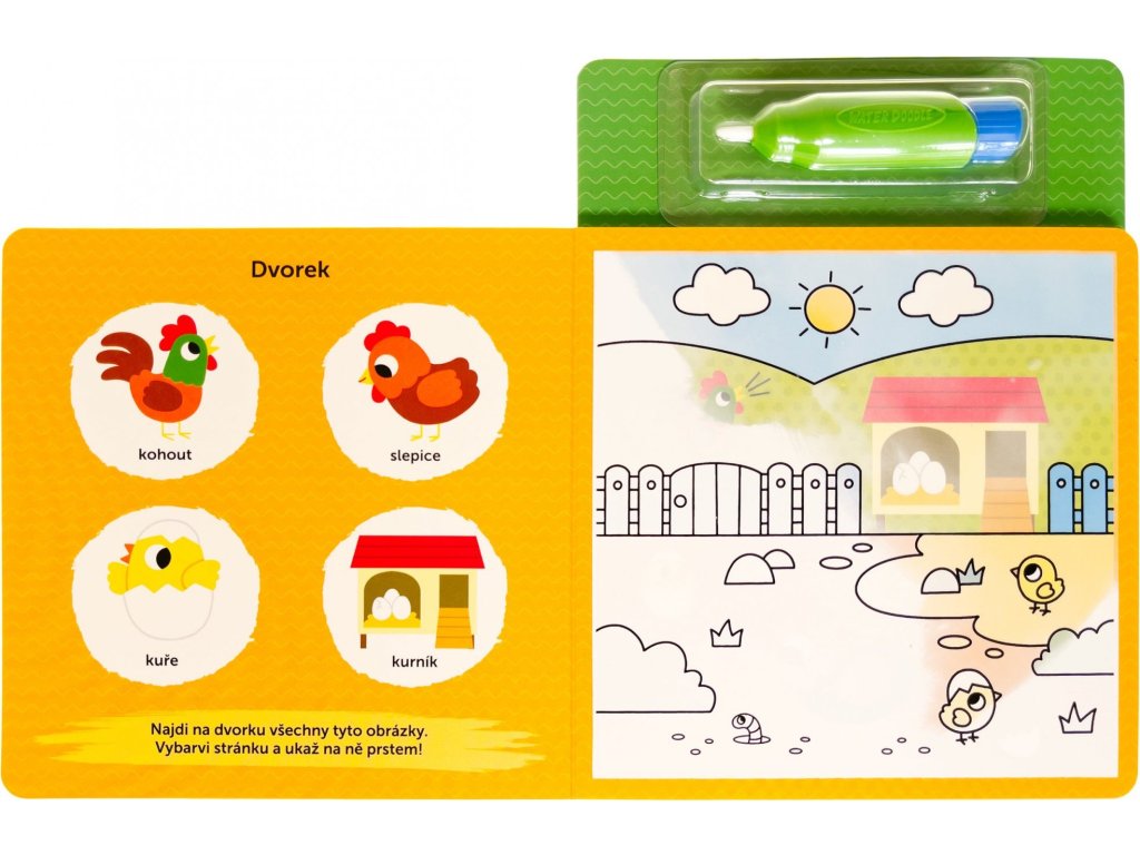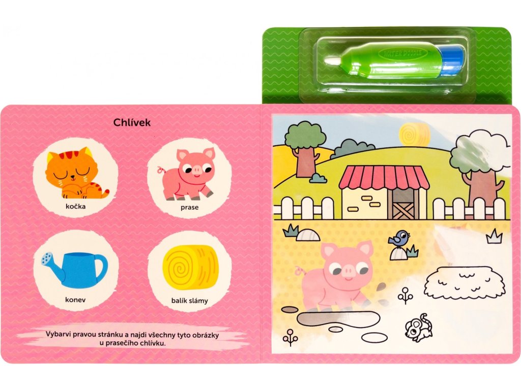 Naplňte speciální štětec vodou a přetřete obrázky z farmy! Jako kouzlem se barvy objeví! Ale to není vše! Na levé stránce jsou obrázky, které budete hledat ve vybarvených scenériích! A co se stane, až obrázky uschnou a barvy zmizí? Můžete se do vybarvování a hledání pustit znovu! Zábava nikdy nekončí!Doplňkové parametry