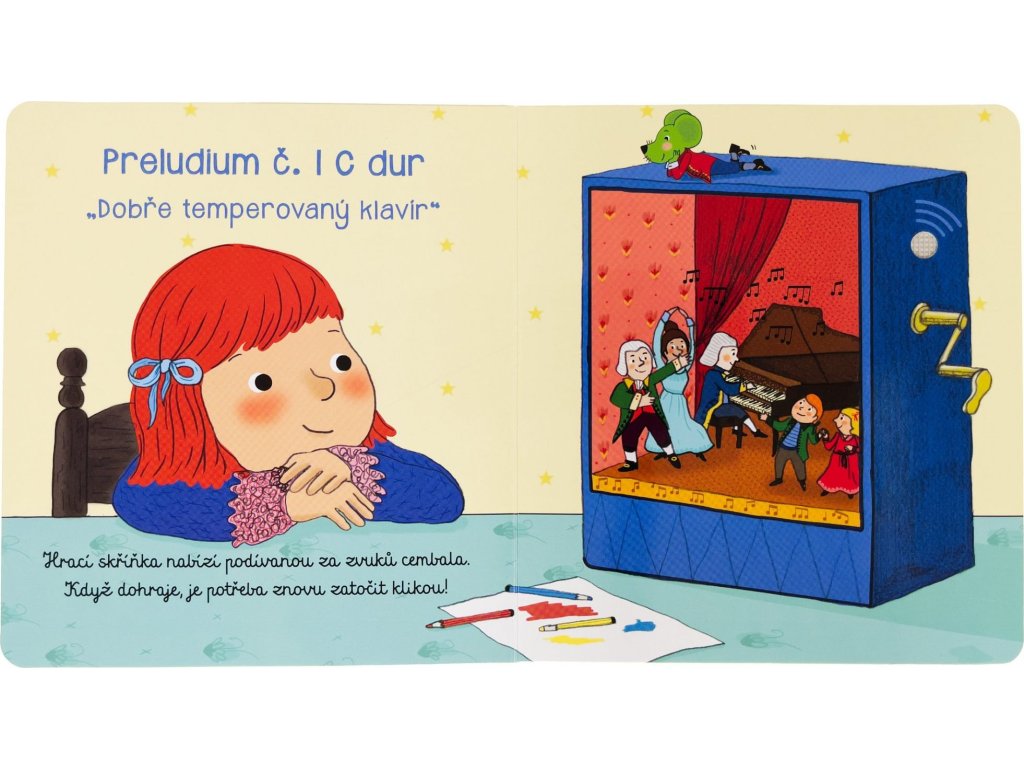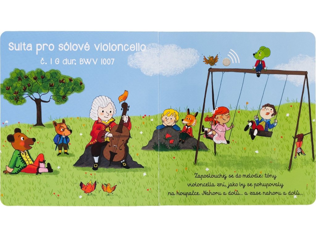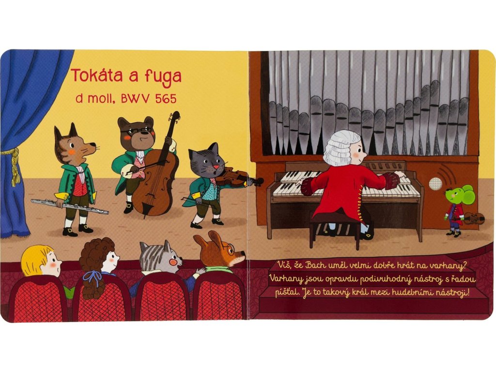 Johann Sebastian Bach byl německým hudebním skladatelem a je považován za jednoho z největších hudebních géniů všech dob. Tato knížka je určena dětem a představuje známé Bachovy skladby, které jsou hrány na různé hudební nástroje. Veselé ilustrace doplňuje krátké povídání o hudebních nástrojích nebo Bachově životě a talentu. Na každé dvoustraně je možné stisknout tlačítko a poslechnout si hudební pasáž, o níž se v knize právě píše. Kniha je tak skvělým interaktivním seznámením s tímto velikánem klasické hudby. Rozvíjí u dětí jejich obrazotvornost a schopnost soustředit se na poslech.Kniha obsahuje vyměnitelné knoflíkové baterie AG10. Prodejní cena zvukové knihy již obsahuje recyklační poplatky.