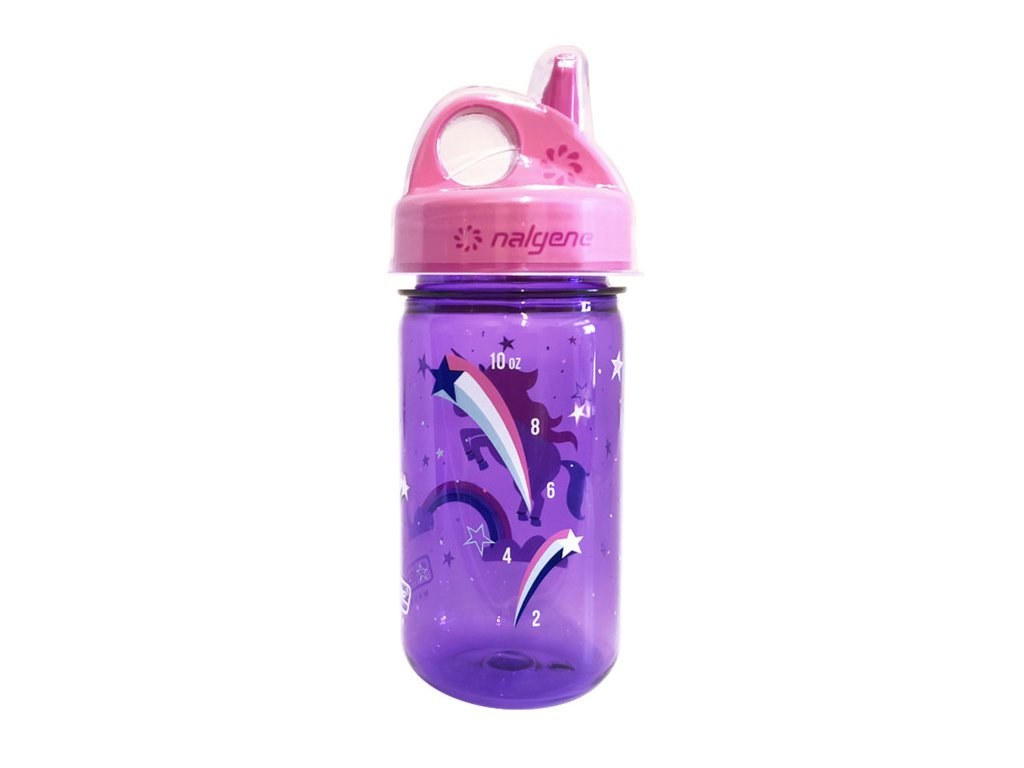 Dětská láhev Nalgene v dívčí kombinaci fialové a růžové. Potisk s motivem jednorožce. Součástí vršku je pítko vhodné pro malé děti už od 1 roku. Díky membráně v pítku z lahve neteče, pokud dítě alespoň minimálně nesaje. Objem 350 ml vhodný pro děti, nebo kohokoli kdo nechce tahat zbytečně velkou a těžkou lahev.