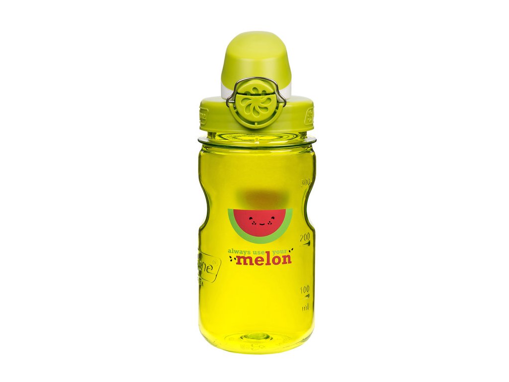 Dětská láhev Nalgene s potiskem s motivem melounu. Unikátní odklápěcí uzávěr OTF. Tento uzávěr je možné otevírat i uzavírat jednou rukou. Je vybaven silikonovým těsněním a pojistkou, zavřená lahev Nalgene OTF tak nepustí ani kapku, ať už je otočená jakkoli. Ve svěží zelené barvě. Objem 350 ml vhodný pro děti, aby zbytečně netahaly nic těžkého.
