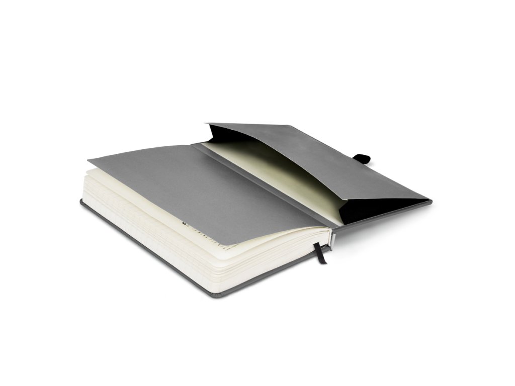Kvalitní notes v pevných deskách s uzavíráním na gumičku, poutkem na tužku a vnitřní kapsou na navštívenky. Linkovaný zápisník můžete použít jako deník, psát do něj hluboké myšlenky nebo pracovní poznámky.