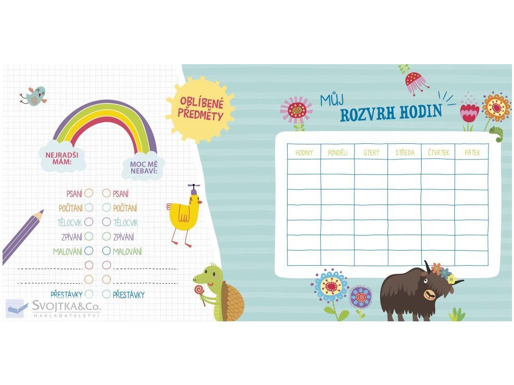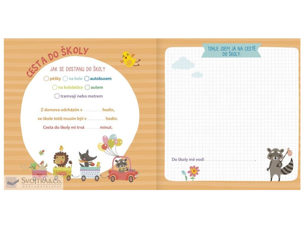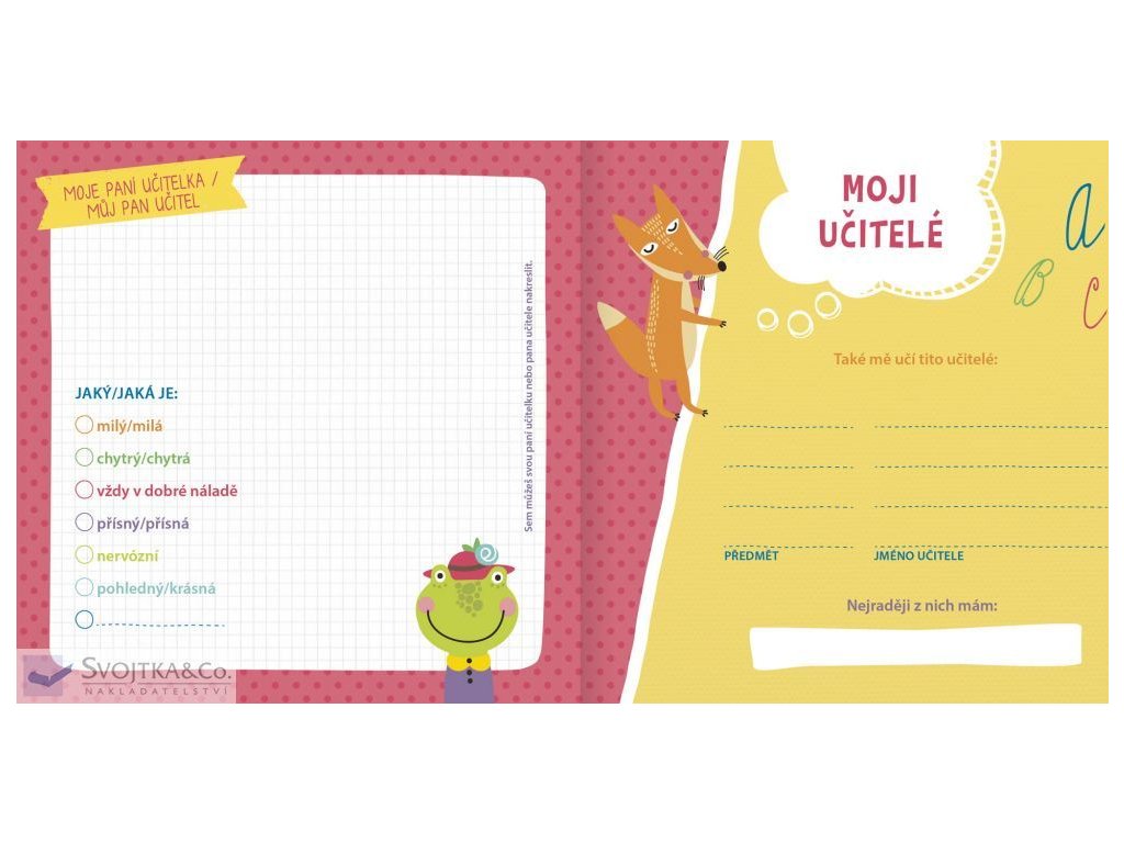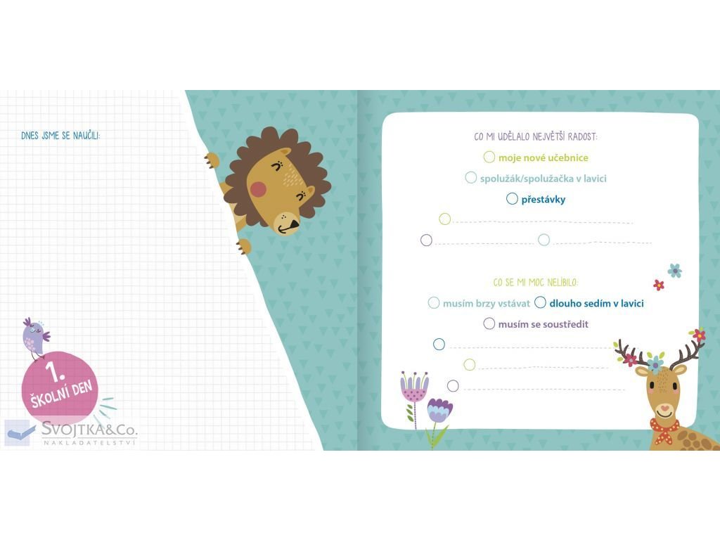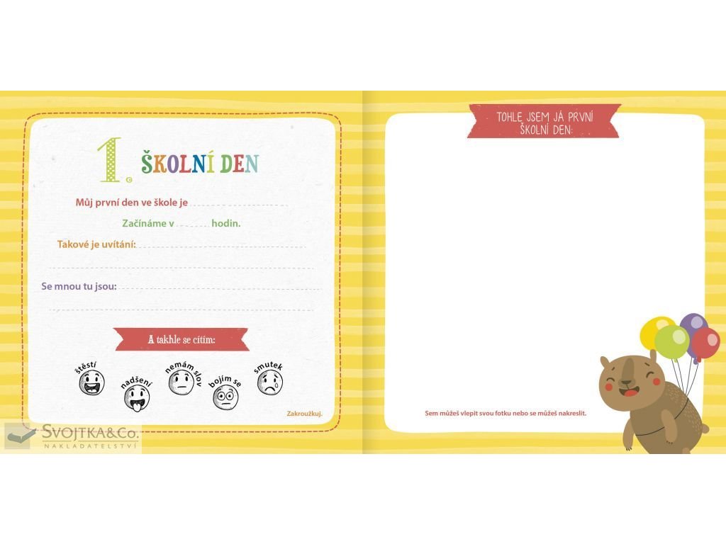 Vzpomínkové album pro každého prvňáčka. Až trochu povyrosteš, rád si zalistuješ svou vlastní knihou. A co v ní najdeš? Vzpomínky na tvé začátky ve školní lavici! Toto album zachycuje tvé první zážitky ve škole, tvá první psaná slova, tvé vlastní kresby školy, třídy, paní učitelky, blahopřání tvé rodiny a podpisy spolužáků. Kniha obsahuje spoustu volných stránek a čeká na to, až ji vyplníš svými kresbami. Tak pojďme začít! Co tě dnes ve škole potěšilo? S kolika dětmi ve třídě se už kamarádíš? Jak se jmenují? A který předmět máš nejraději?