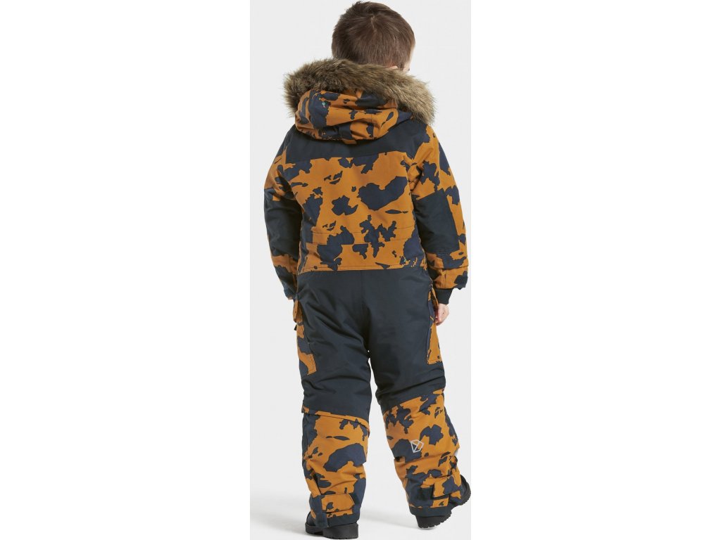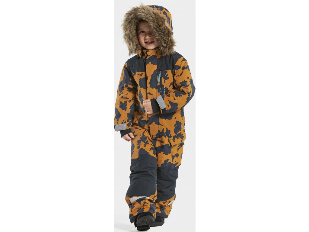 Oblíbená dětská zimní kombinéza Didriksons Polarbjornen Žluto-hnědá je to nejteplejší co Vašemu dítěti můžete koupit. Zateplení 200g/m2 udrží v teple i ty největší zmrzlíky. Ani zbytek kombinezy rozhodně nezklame - vydrží totiž prakticky vše. Pro zimní koulovačky a bobovačky stvořená! Dokonce i víc než jednu sezónu vydrží - má totiž rostoucí rukávy a nohavice.
