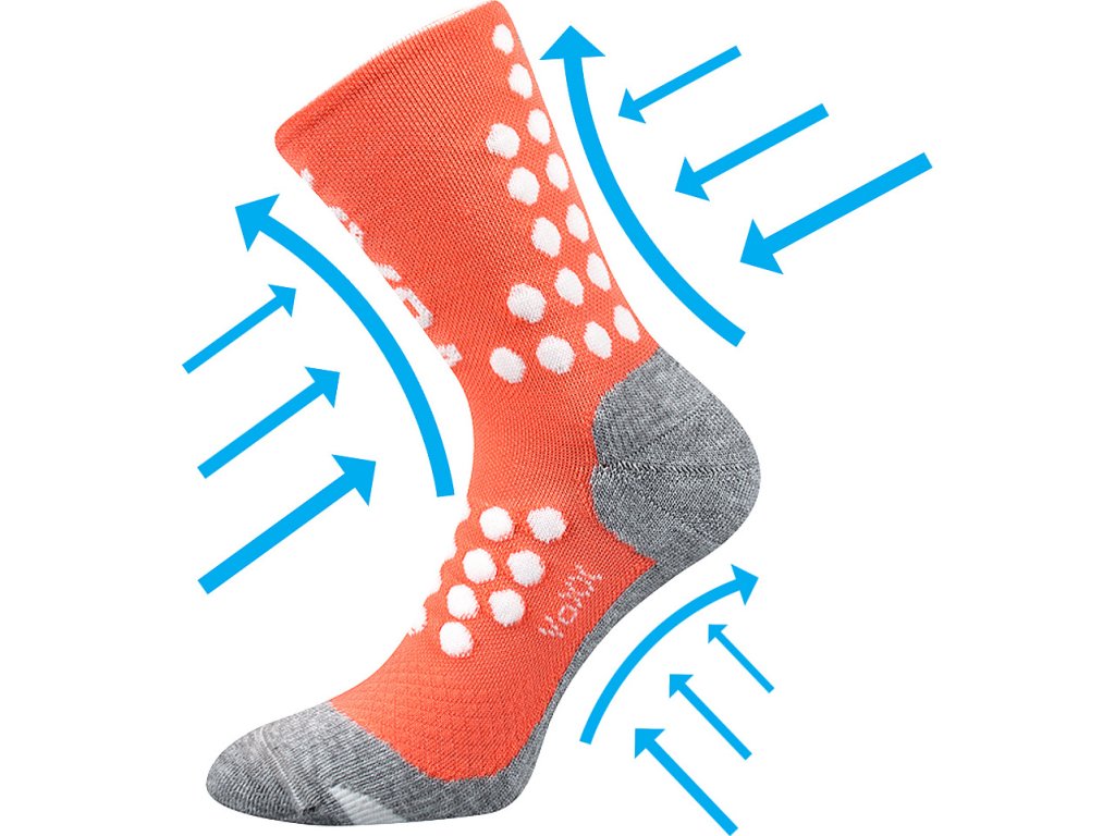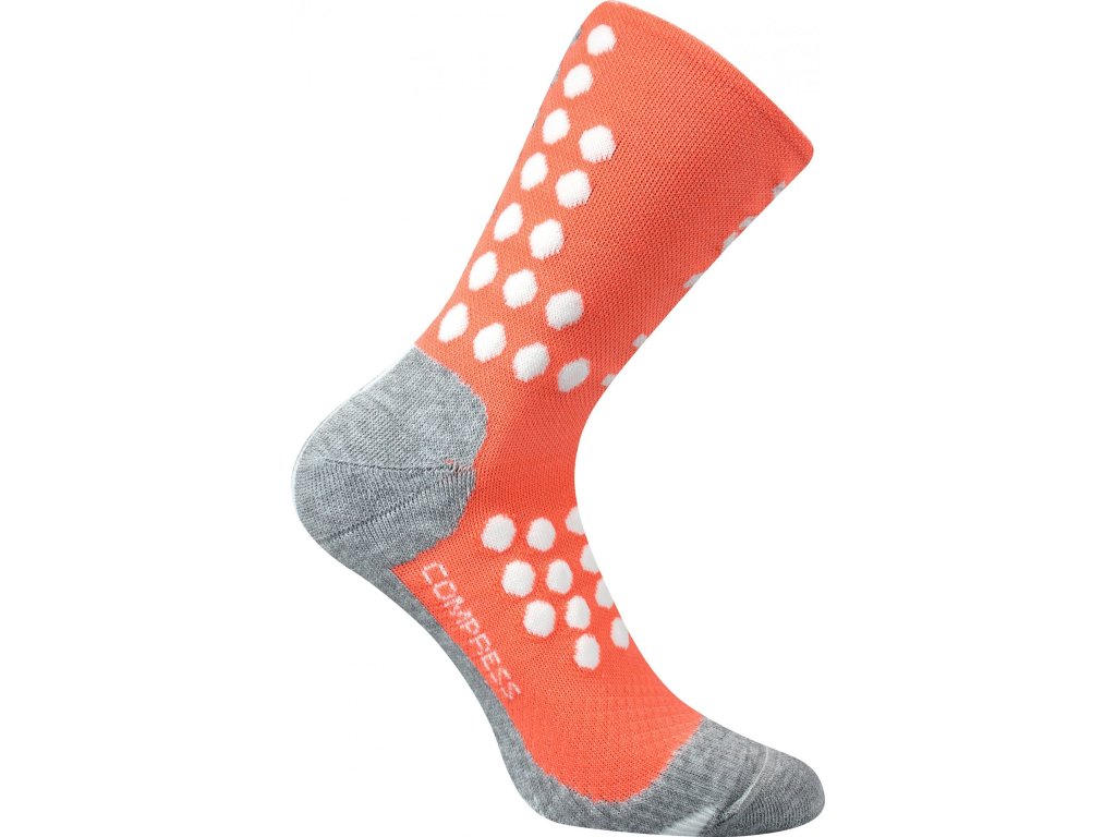 Dámské a pánské kompresní sportovní ponožky VoXX® FINISH s vyvzorovanou patou a jedinečnými puntíkovanými polstrovanými zónami proti otlakům. Kompresní ponožky mají řetízkovanou špici a speciální konstrukci zamezující přetáčení v botě. Anatomicky tvarované polstrované zóny brání vzniku otlaků a puchýřů. Díky kompresi napomáhají pevnějšímu držení a vyšší stabilitě kotníku, zapletením materiálu silproX® s ionty stříbra zajišťuje antibakteriální ochranu a jemné polstrování materiálem DRYTEX zajistí maximální komfort a odvod potu při vysoké sportovní zátěži. Kompresní ponožky jsou v teplotní třídě A, vhodné do rozmezí teplot od +10°C do +35°C. *KOMPRESNÍ TŘÍDA 1 (tato kompresivní třída výrobků slouží preventivně, především jsou vhodné pro pacienty s pocitem těžkých nohou a počáteční žilní nedostatečnosti, která se projevuje pocitem únavy, tíhy a napětím v dolních končetinách).